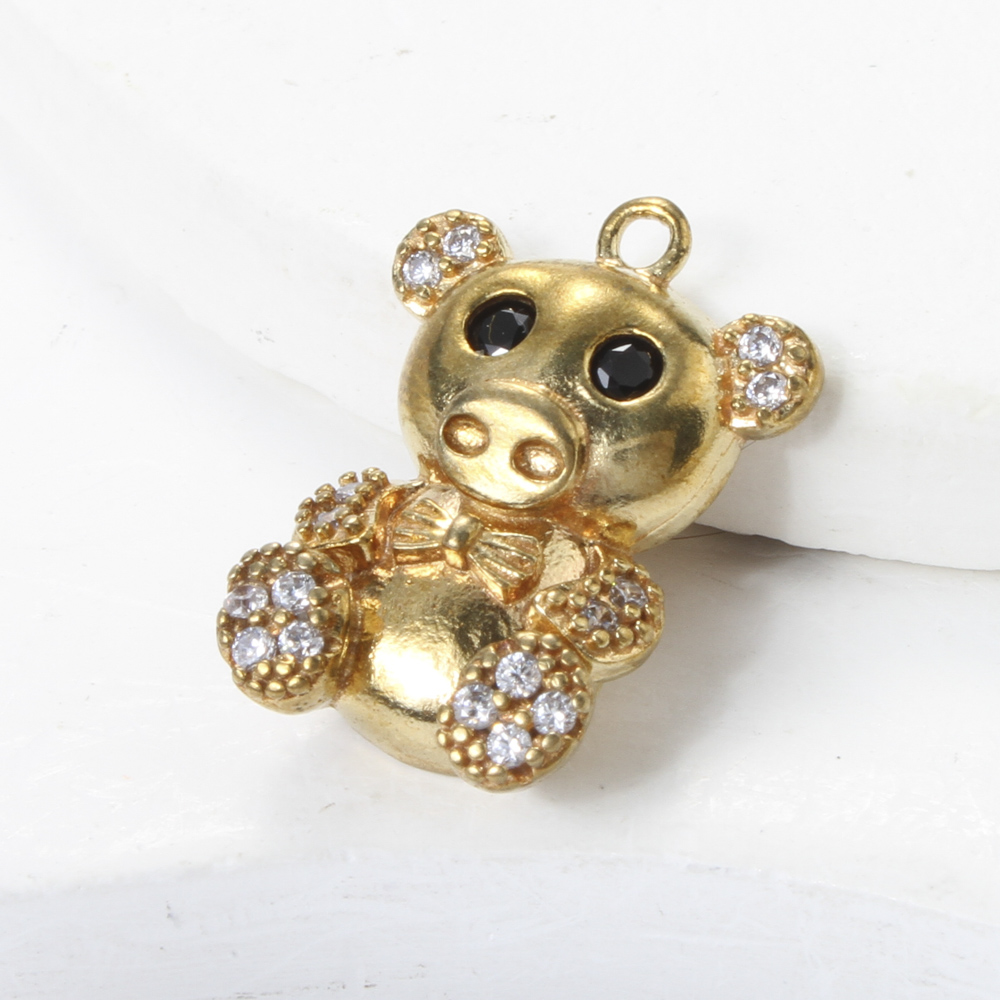 Pendentifs strass en laiton, cochon, Placage, DIY & avec strass, doré, protéger l'environnement, sans nickel, plomb et cadmium, 19x14x4.80mm, Vendu par PC