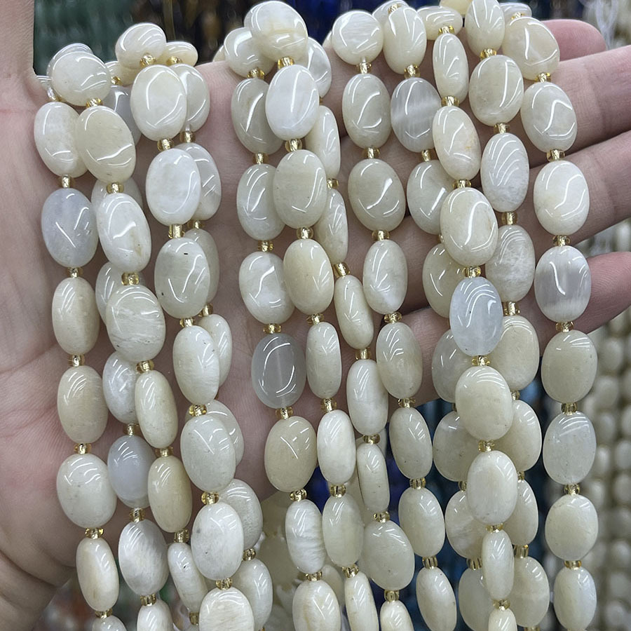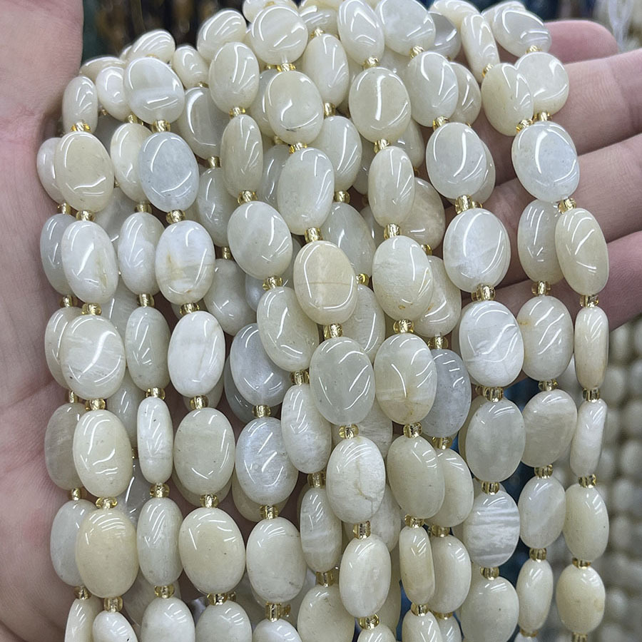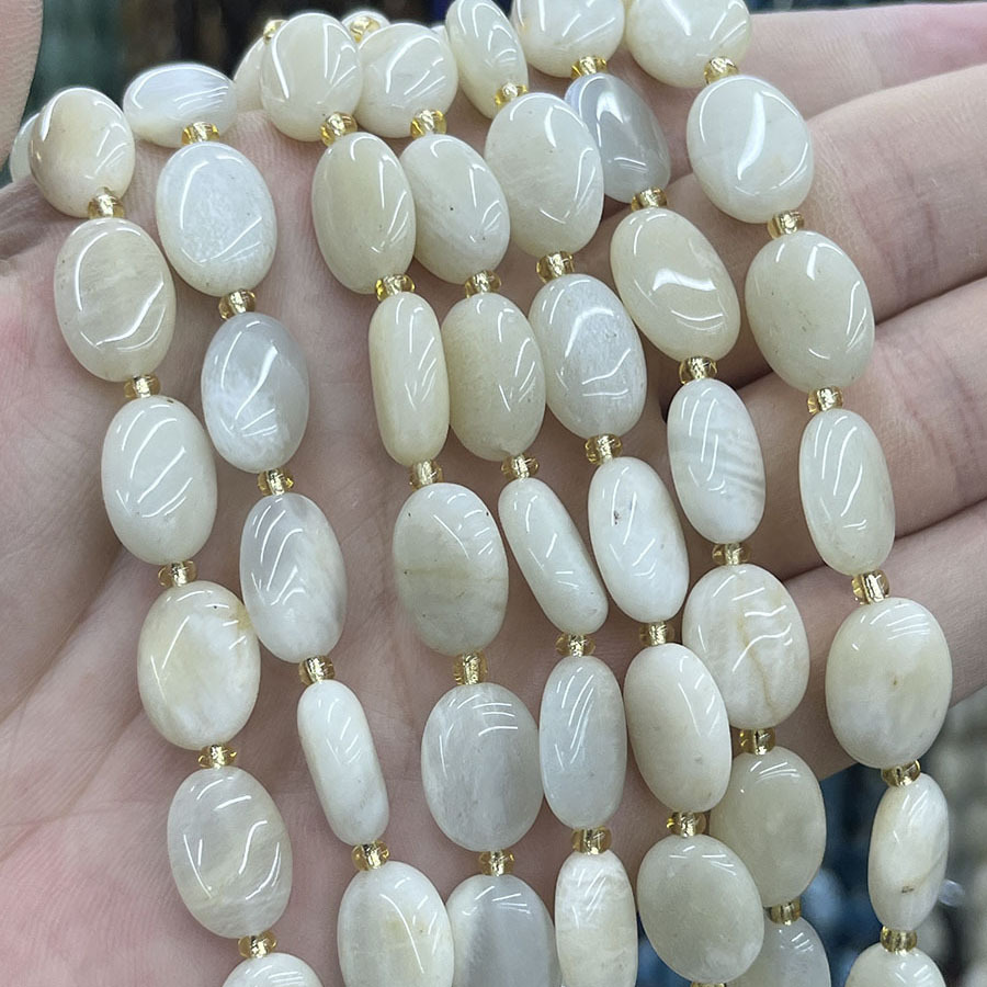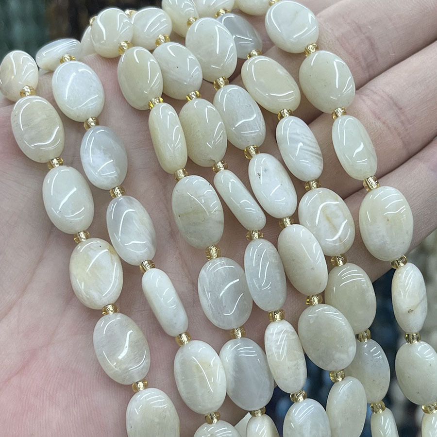 Perles Pierre de lune, Moonstone, ellipse, DIY, blanc, 10x14mm, Vendu par Environ 38 cm brin