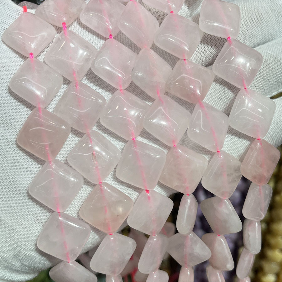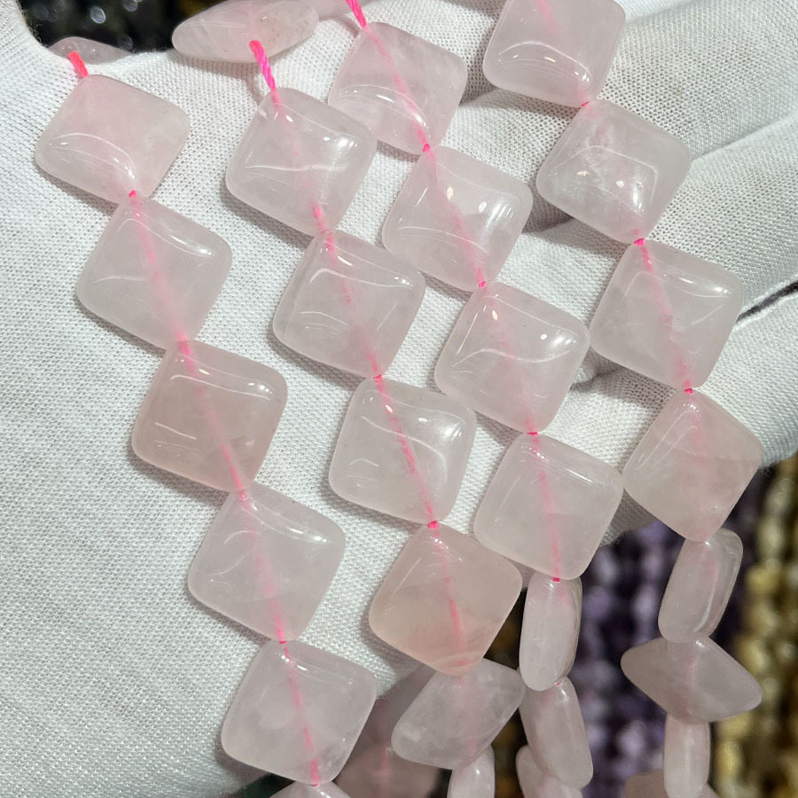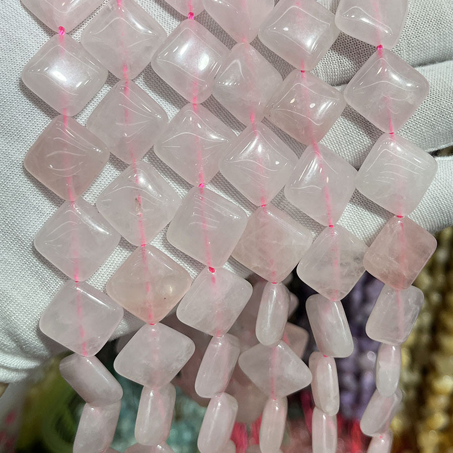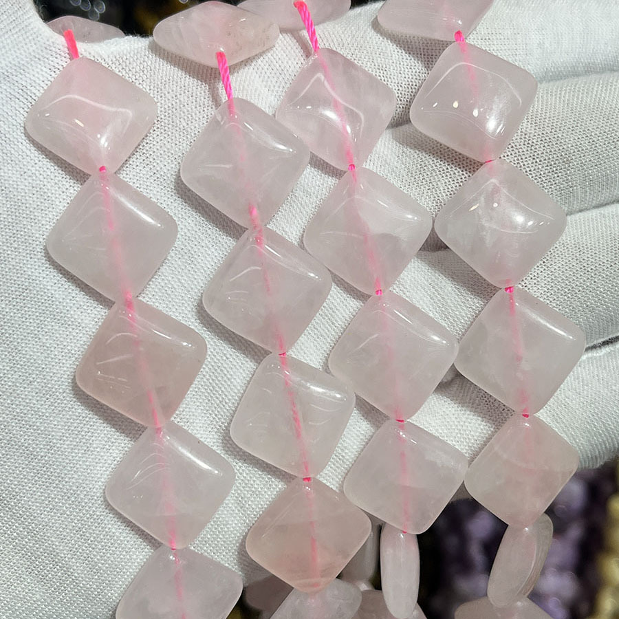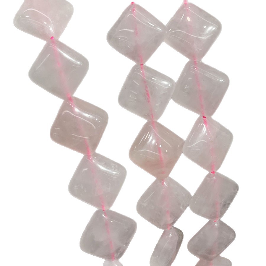 Perles Quartz Rose naturel, Losange, DIY, rose, 15mm, Vendu par 38 cm brin