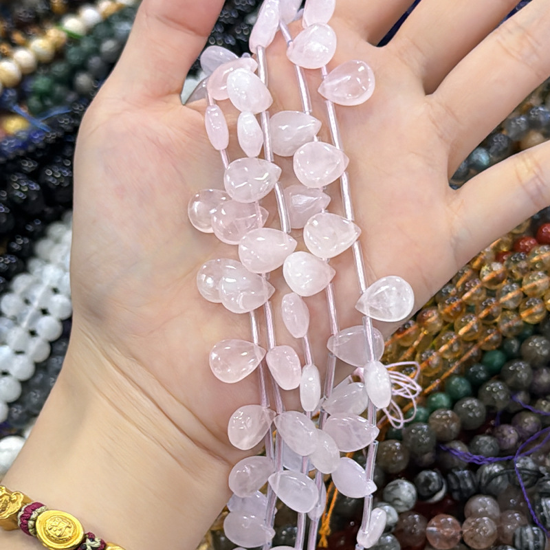 Perles Quartz Rose naturel, larme, DIY, rose, 14x10x5mm, Vendu par 38 cm brin
