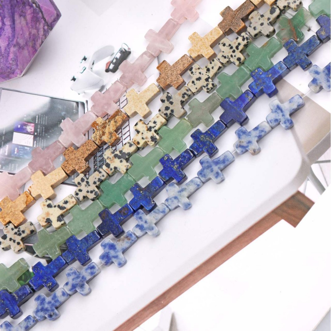 Perles bijoux en pierres gemmes, Pierre naturelle, croix, DIY & différents matériaux pour le choix, plus de couleurs à choisir, 12x16mm, Vendu par Environ 36 cm brin