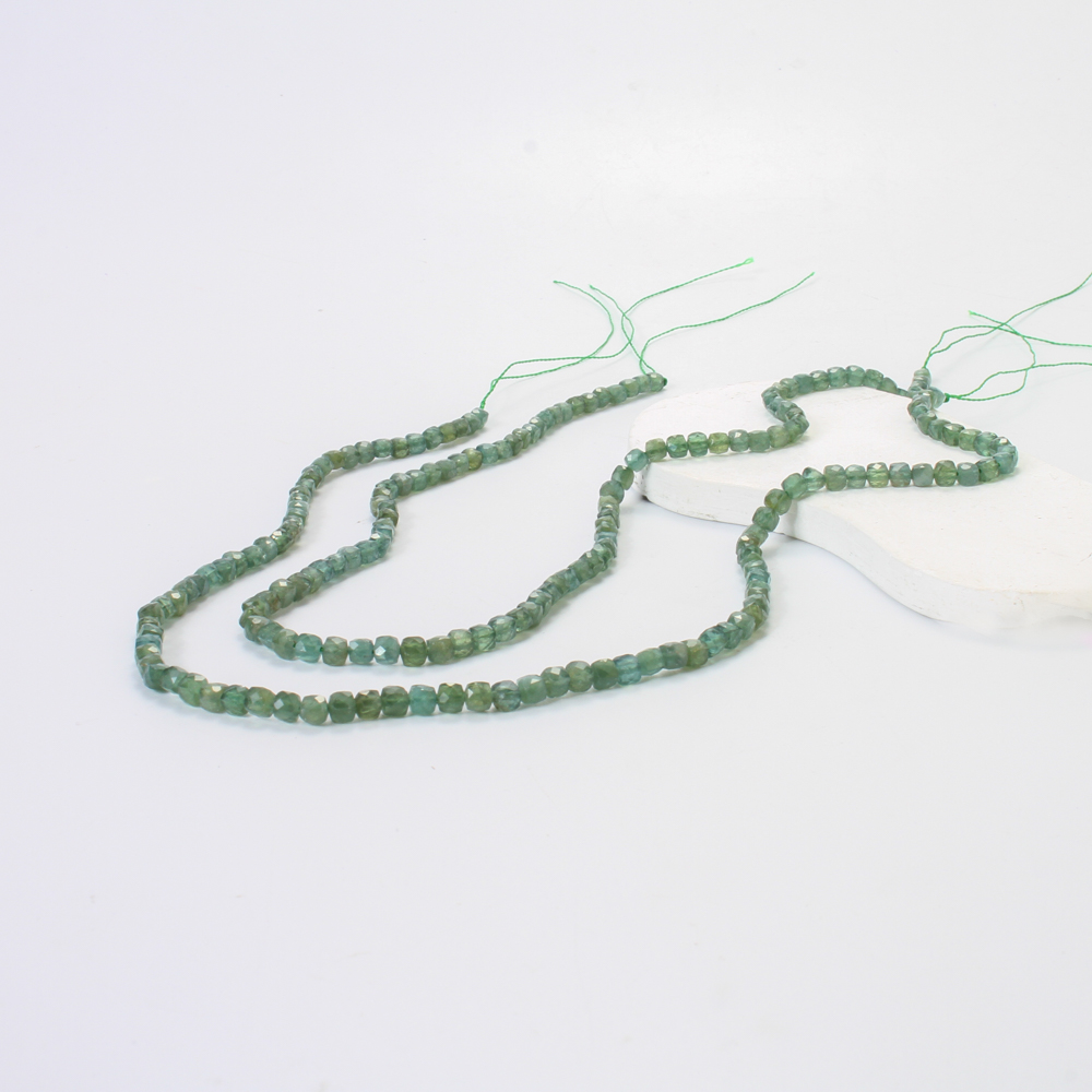Perles bijoux en pierres gemmes, Apatites, cube, DIY & normes différentes pour le choix & facettes, vert, Vendu par Environ 38 cm brin