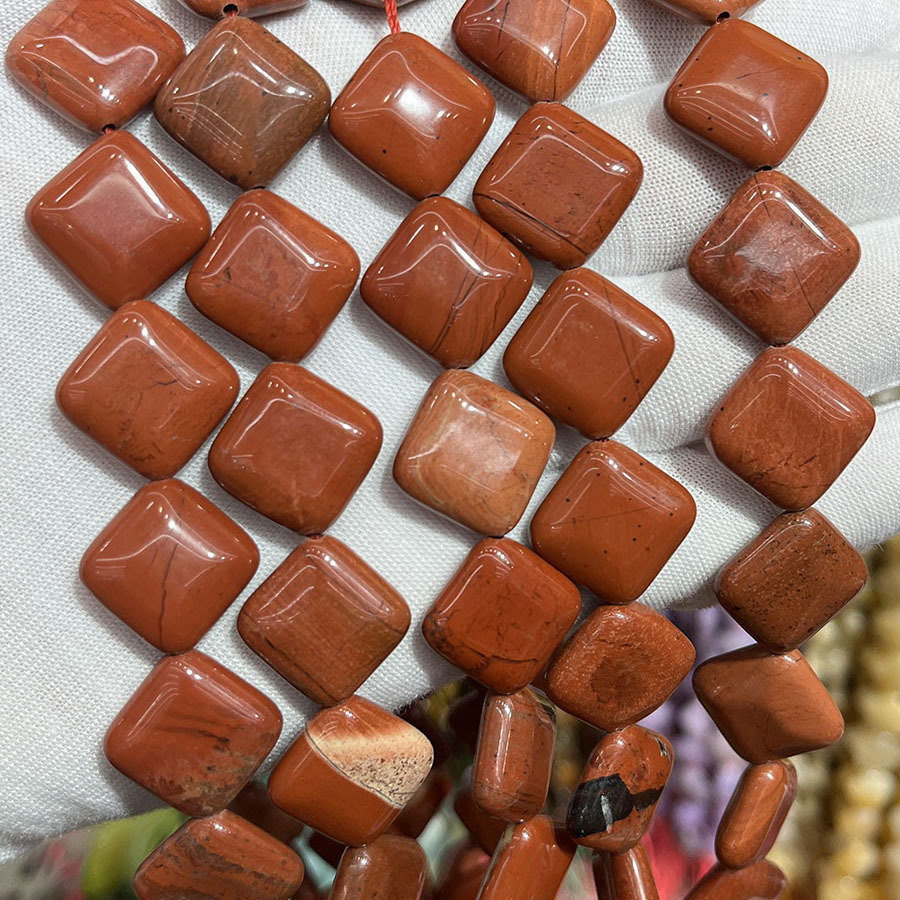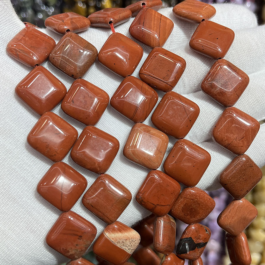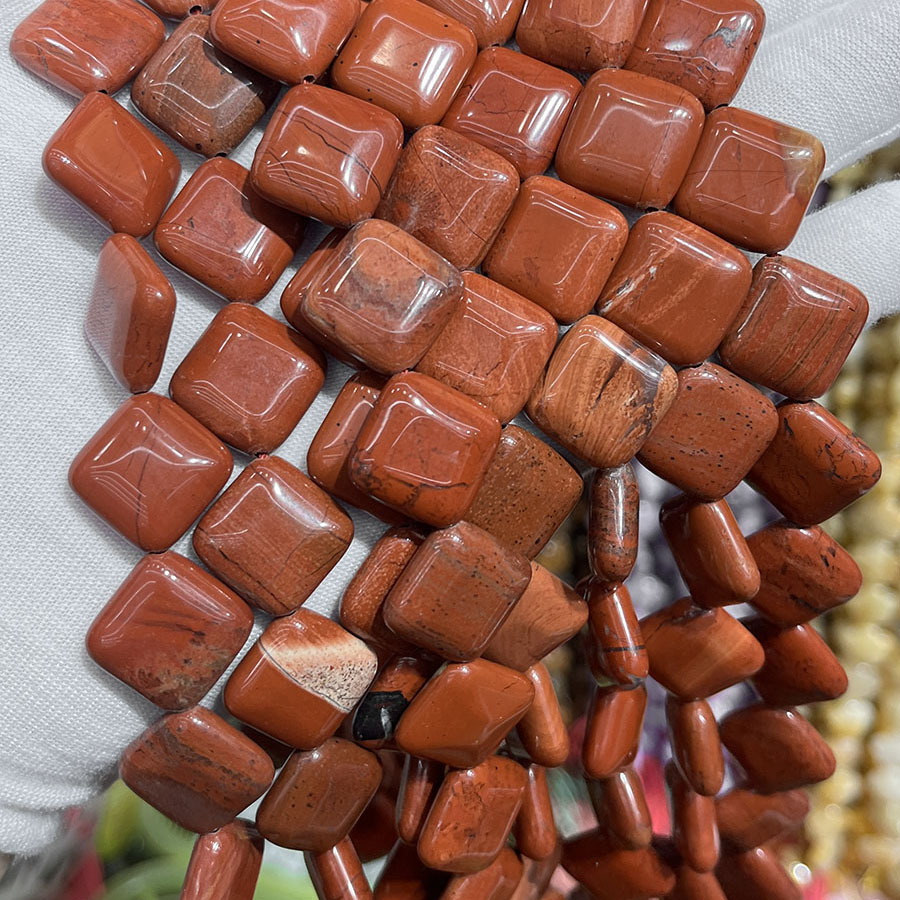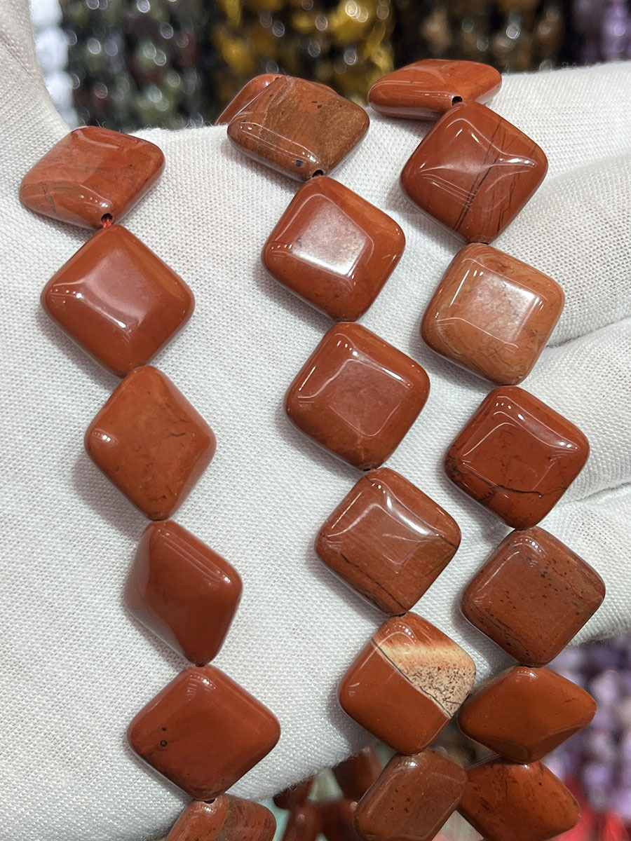 Perles bijoux en pierres gemmes, Jaspe rouge, Losange, DIY, rouge, 15mm, Vendu par 38 cm brin