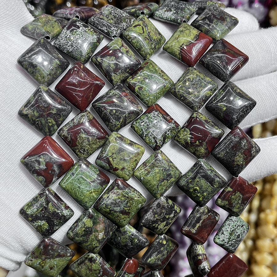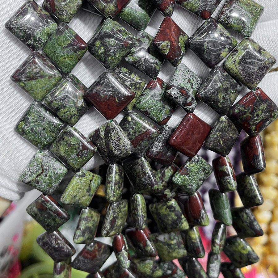 Perles bijoux en pierres gemmes, Dragon-Blood-pierre, Losange, DIY, couleurs mélangées, 15mm, Vendu par 38 cm brin