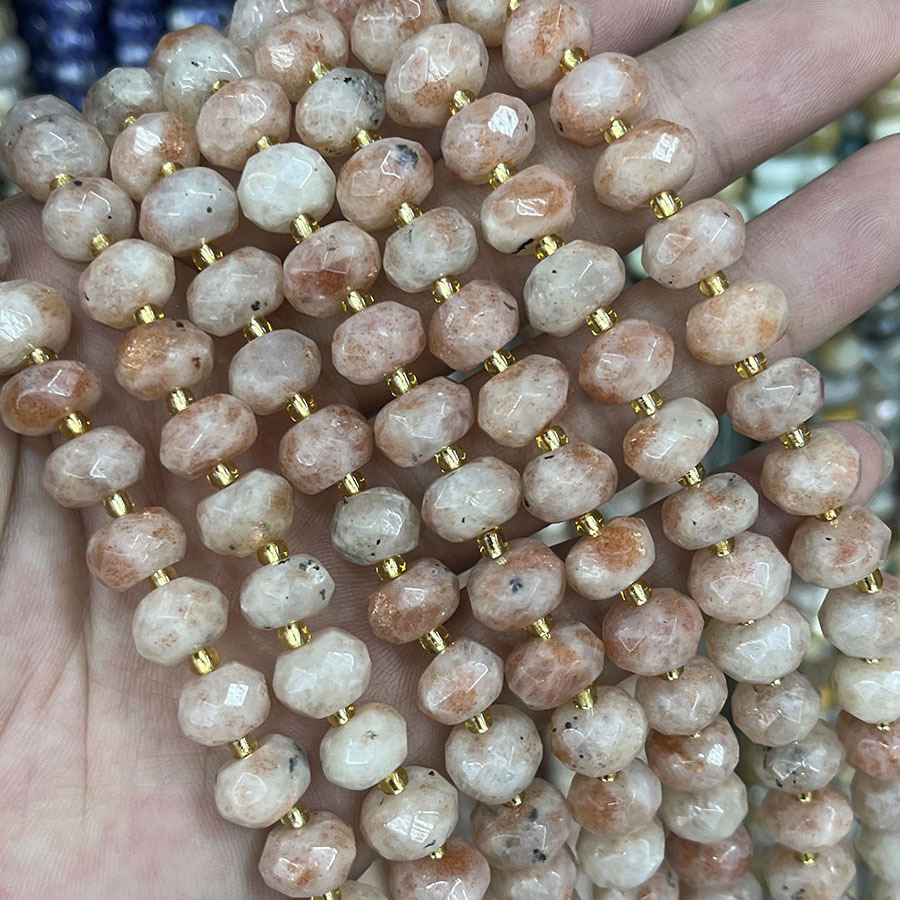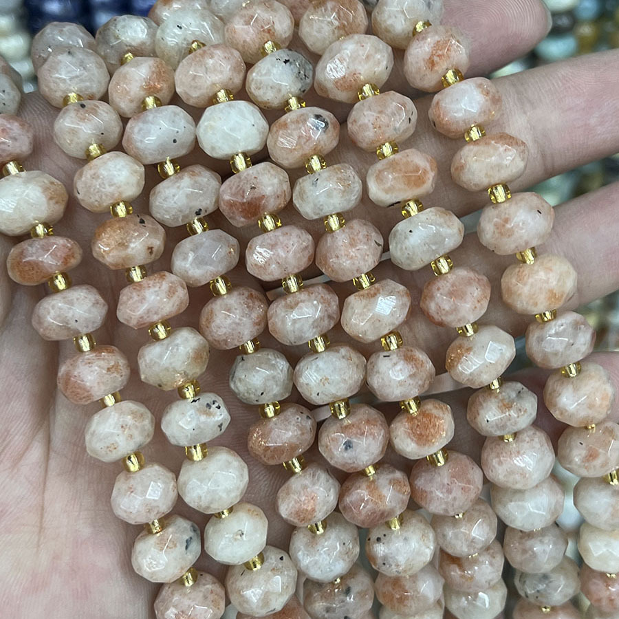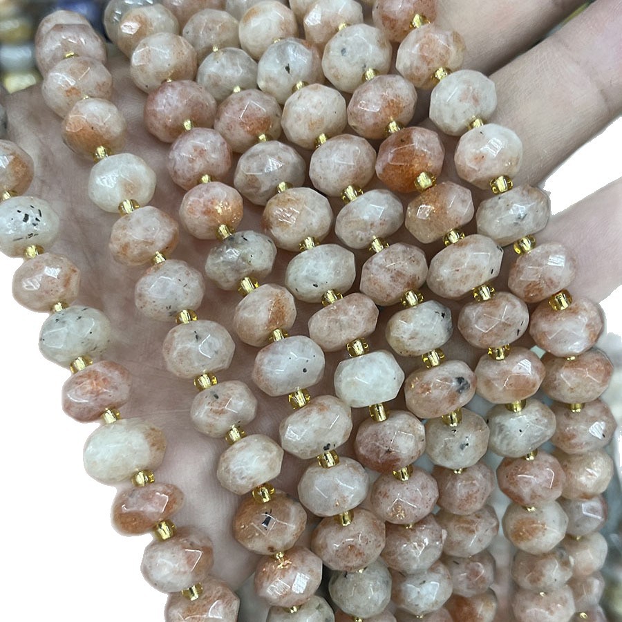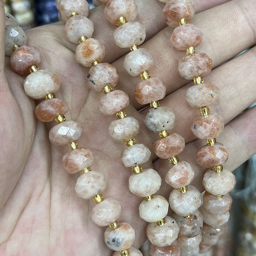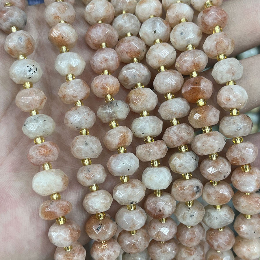 Perles bijoux en pierres gemmes, pierre du soleil, avec Seedbead, DIY, couleurs mélangées, 7-10mm, Vendu par 38 cm brin