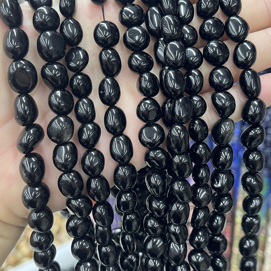Perles bijoux en pierres gemmes, Schorl, DIY, noire, Vendu par 38 cm brin