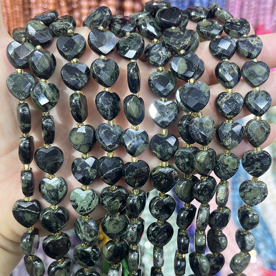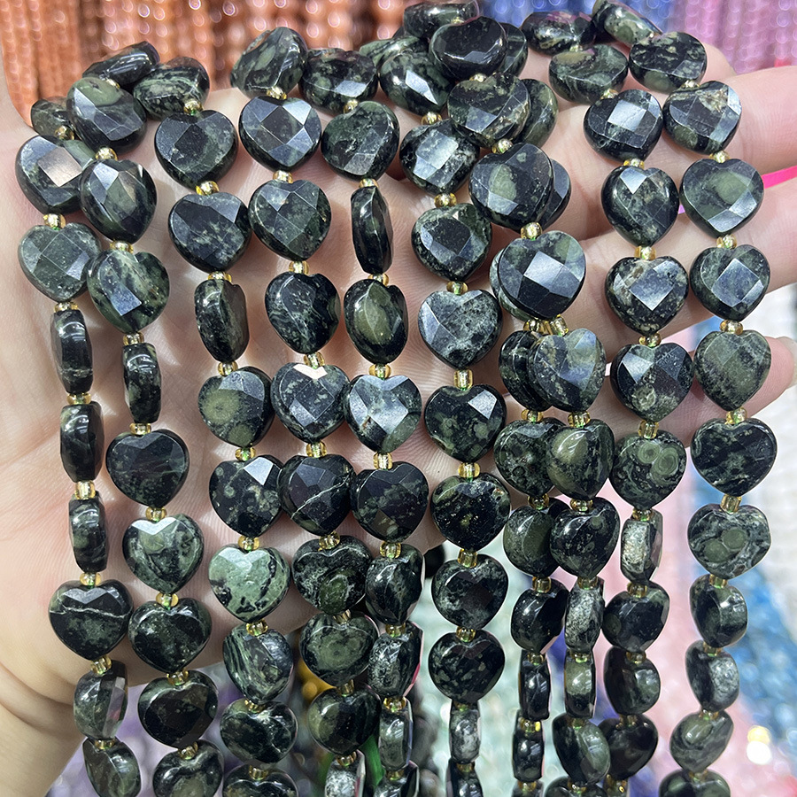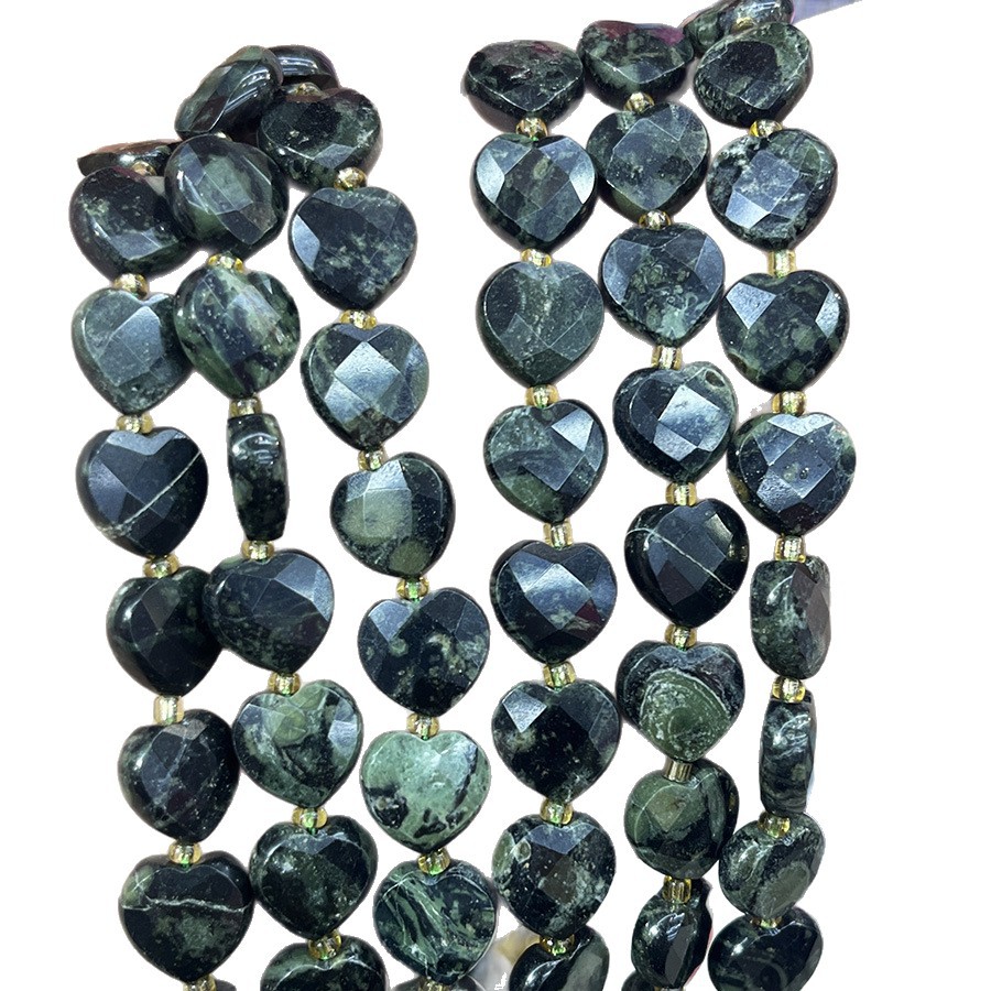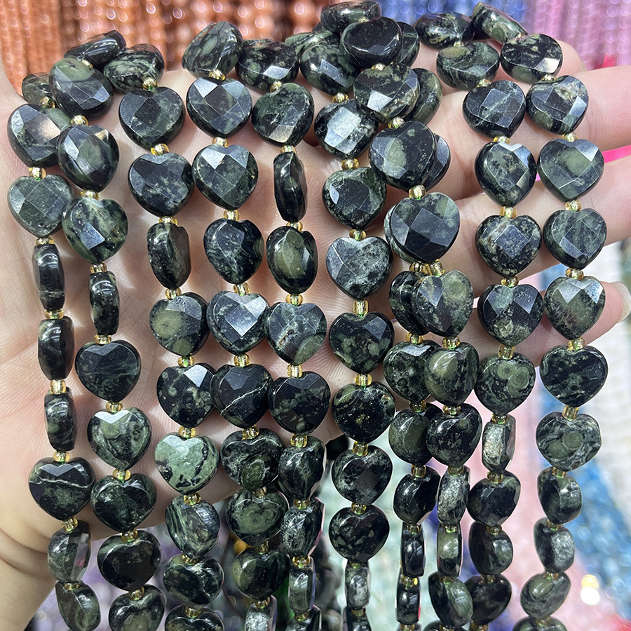 Perles bijoux en pierres gemmes, Pierre d'oeil vert, avec Seedbead, coeur, DIY, couleurs mélangées, 12mm, Vendu par 38 cm brin