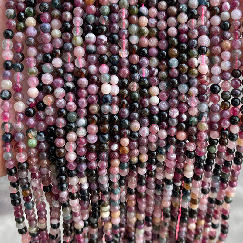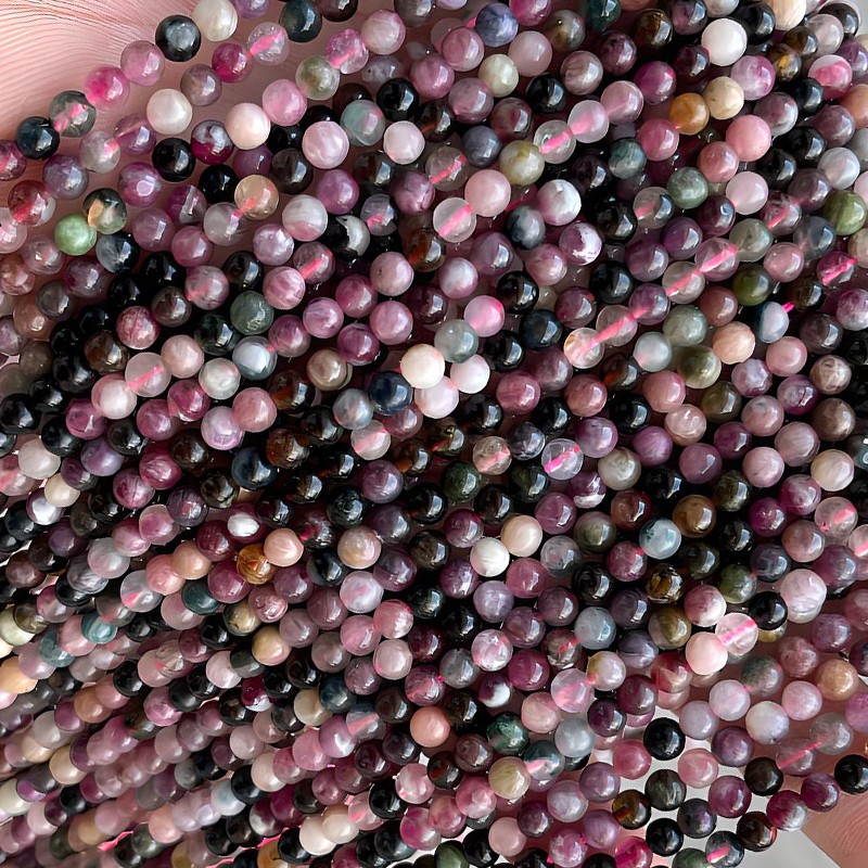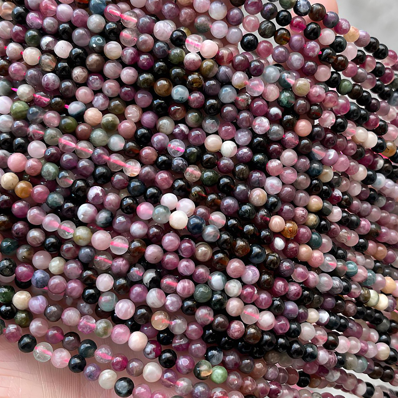 Perles bijoux en pierres gemmes, tourmaline, Rond, poli, naturel & DIY, multicolore, 4mm, Environ 90PC/brin, Vendu par brin