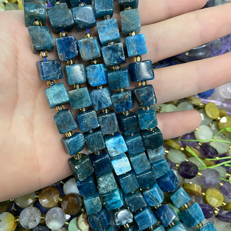 Perles bijoux en pierres gemmes, Apatites, avec Seedbead, cadre, DIY, couleurs mélangées, 8x8mm, Vendu par 38 cm brin