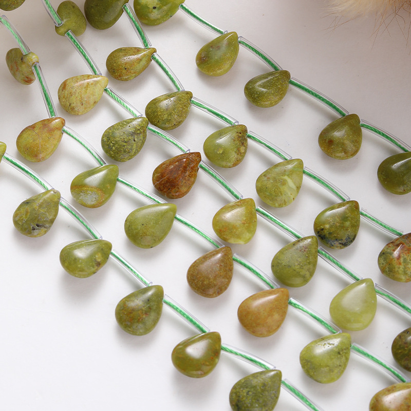 Perles bijoux en pierres gemmes, Opale verte, larme, DIY, couleurs mélangées, 14x10x5mm, Vendu par 38 cm brin