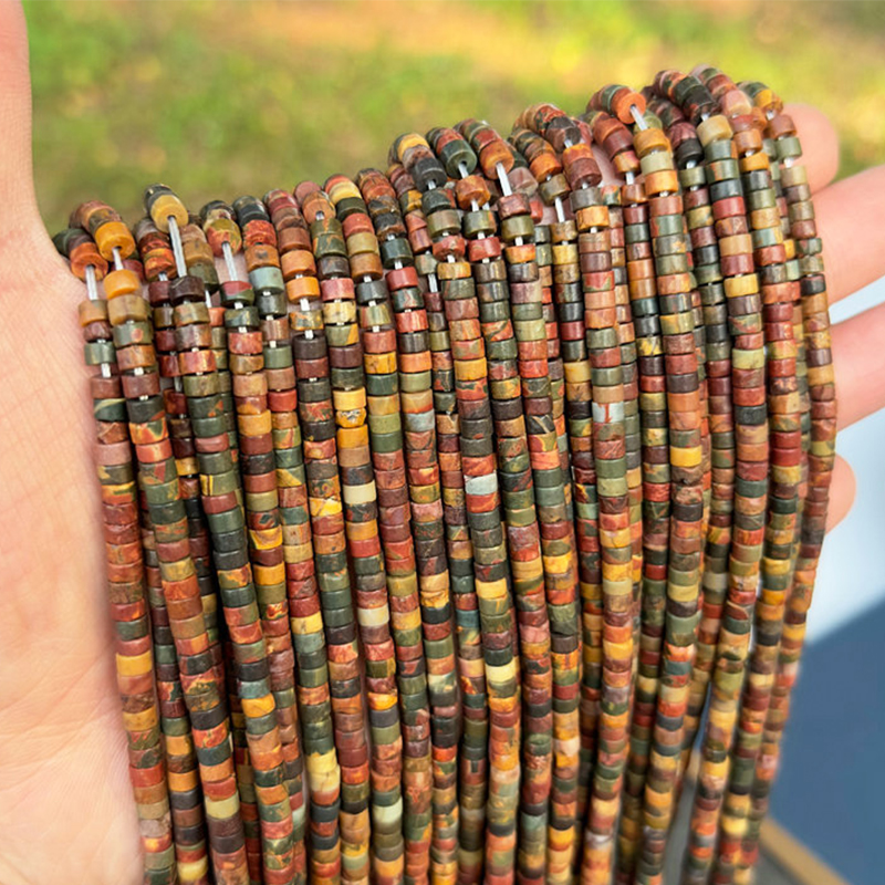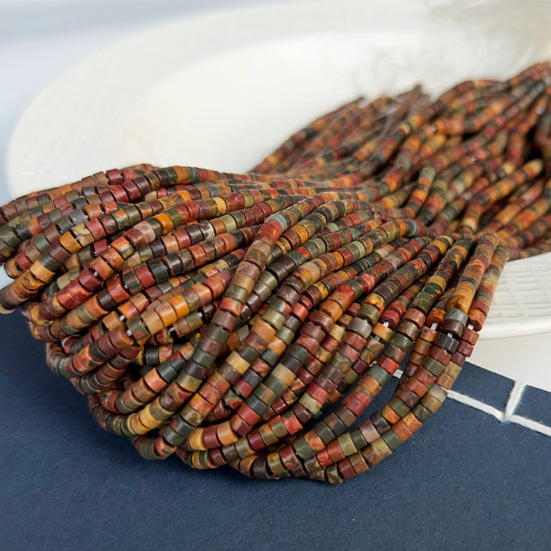Perles bijoux en pierres gemmes, Pin rouge, avec Jaspe Picasso, Naturel & DIY, 2x4mm, Vendu par Environ 38 cm brin