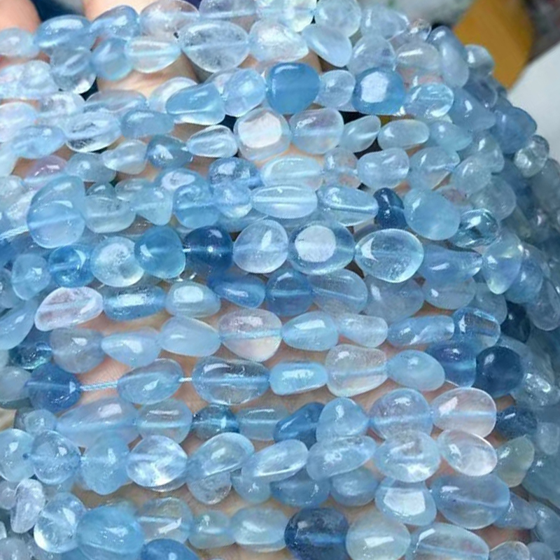 Perles bijoux en pierres gemmes, aigue-marine, pepite, naturel & DIY, beads length 8-10mm, Vendu par Environ 35-40 cm brin