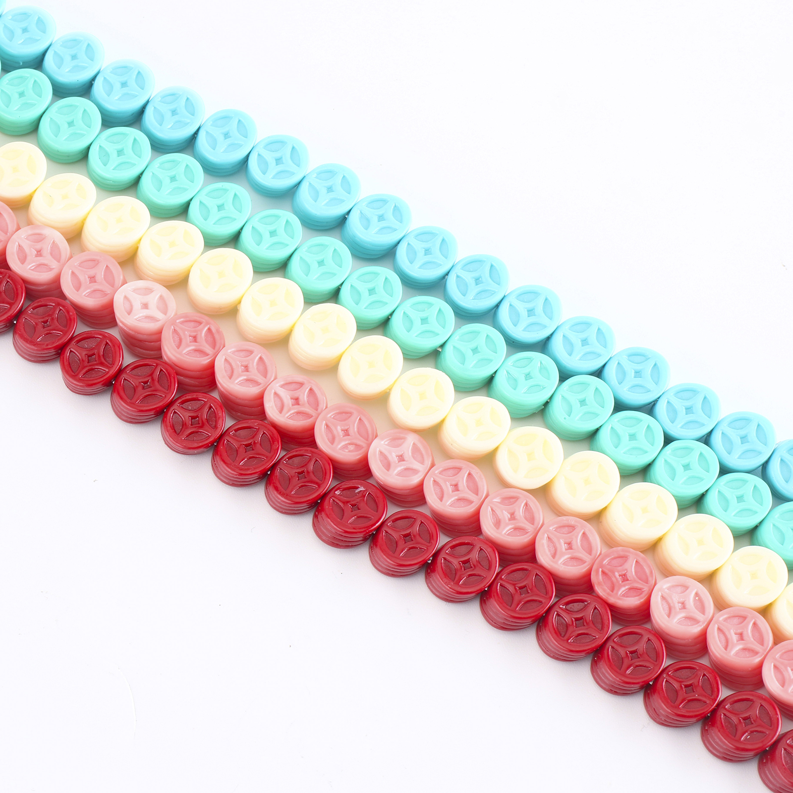 Perles bijoux en résine, Pièce de monnaie antique chinoise, DIY, plus de couleurs à choisir, 9x9x6mm, Longueur Environ 38 cm, Vendu par PC
