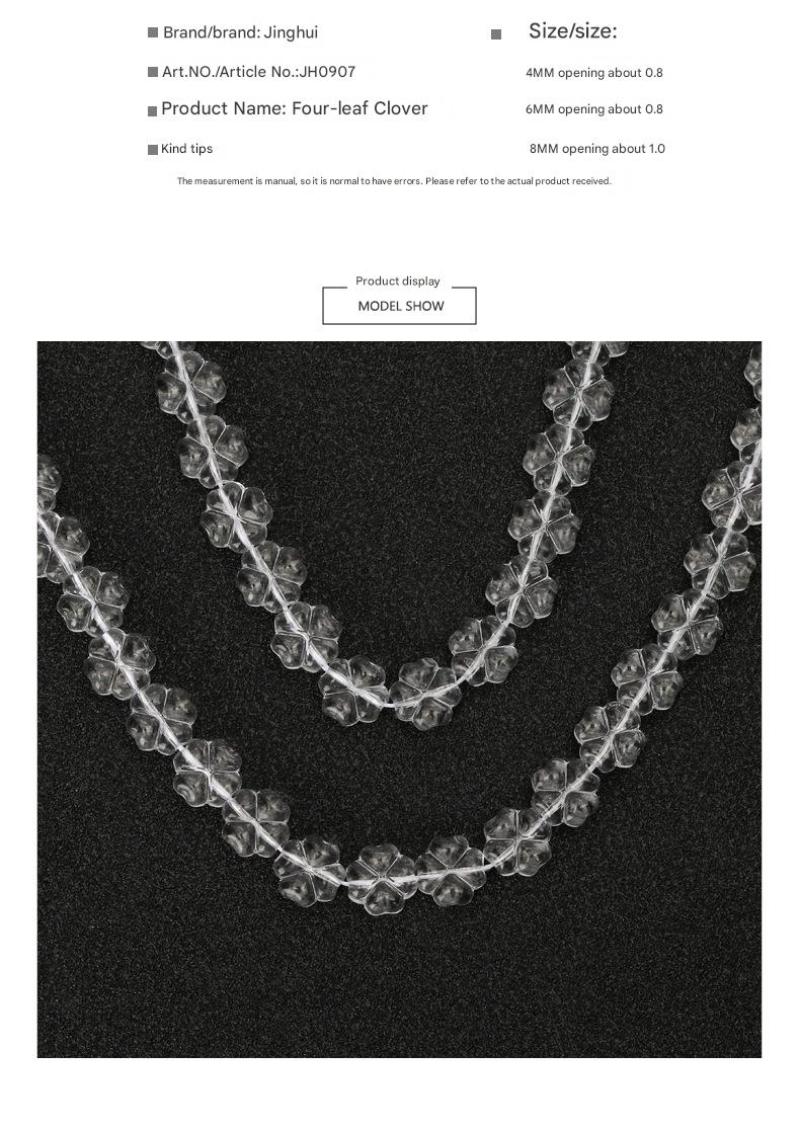 Perles cristal, Trèfle à quatre feuilles, DIY, transparent, 10mm, Vendu par 38 cm brin