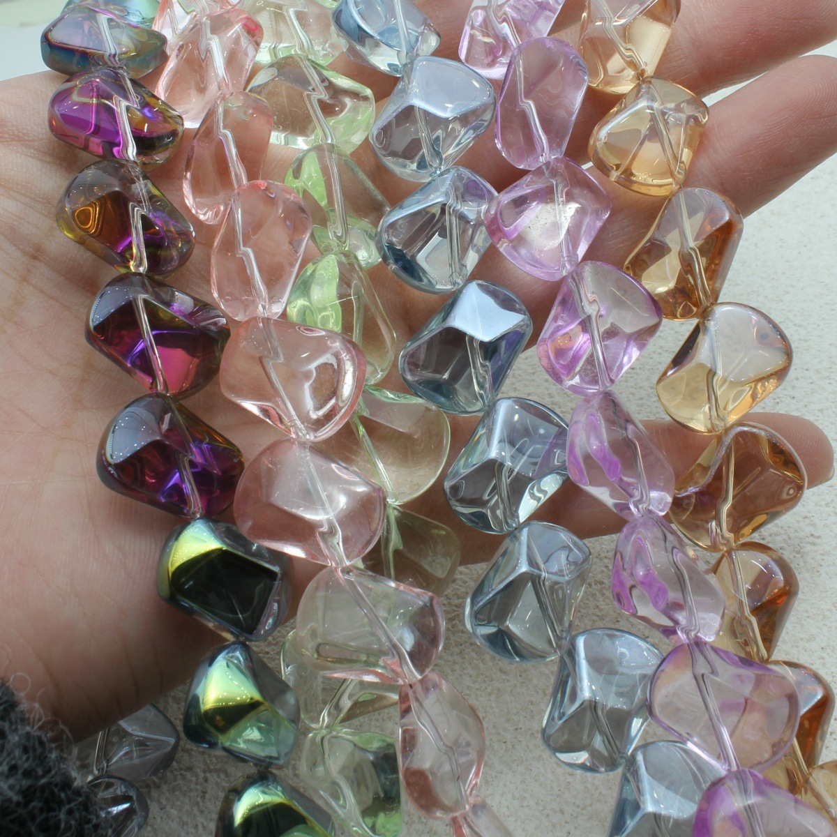 Perles cristal, Motif géométrique, Placage, DIY, plus de couleurs à choisir, 13x13x10mm, Environ 50PC/brin, Vendu par brin