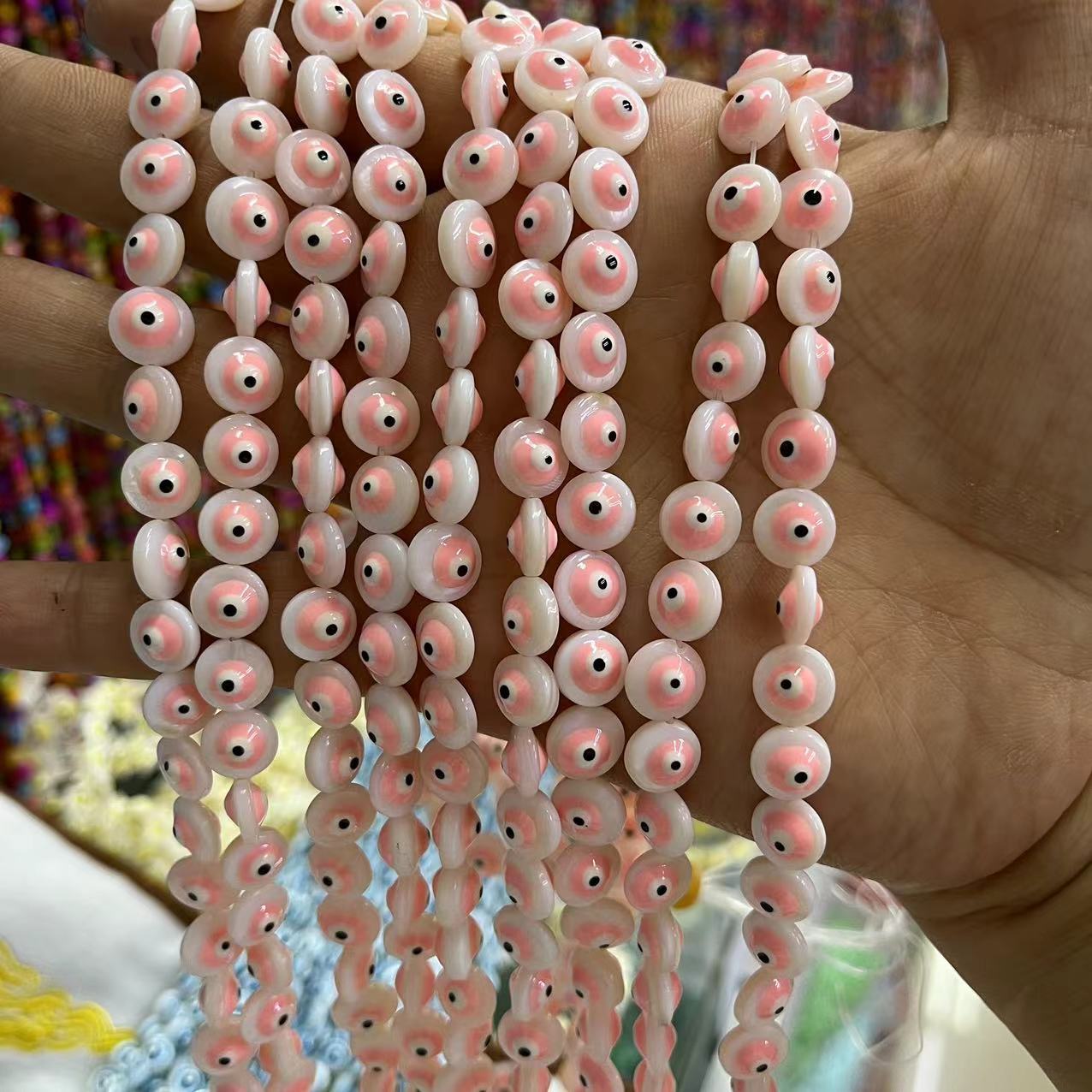 Perles de bijoux mode Evil Eye, coquille, Rond, DIY & modèles différents pour le choix & émail, plus de couleurs à choisir, Vendu par brin