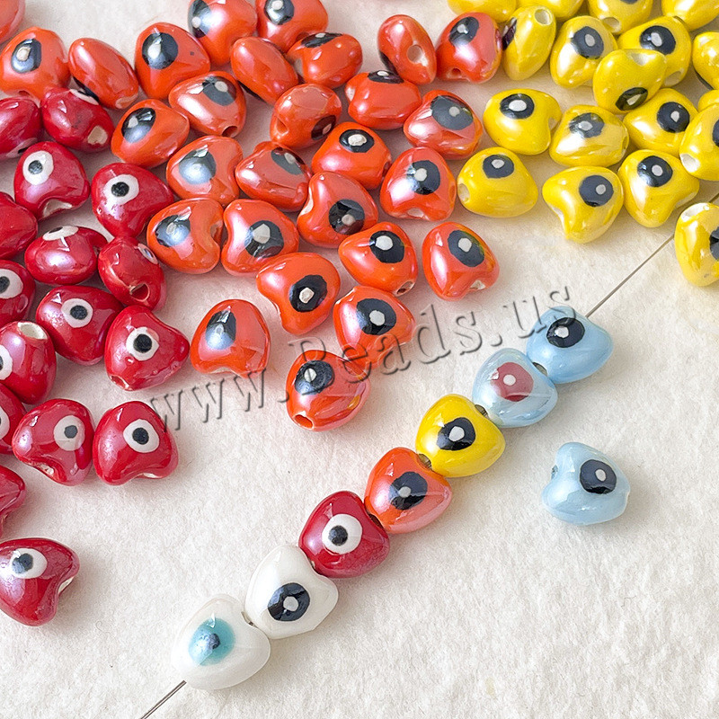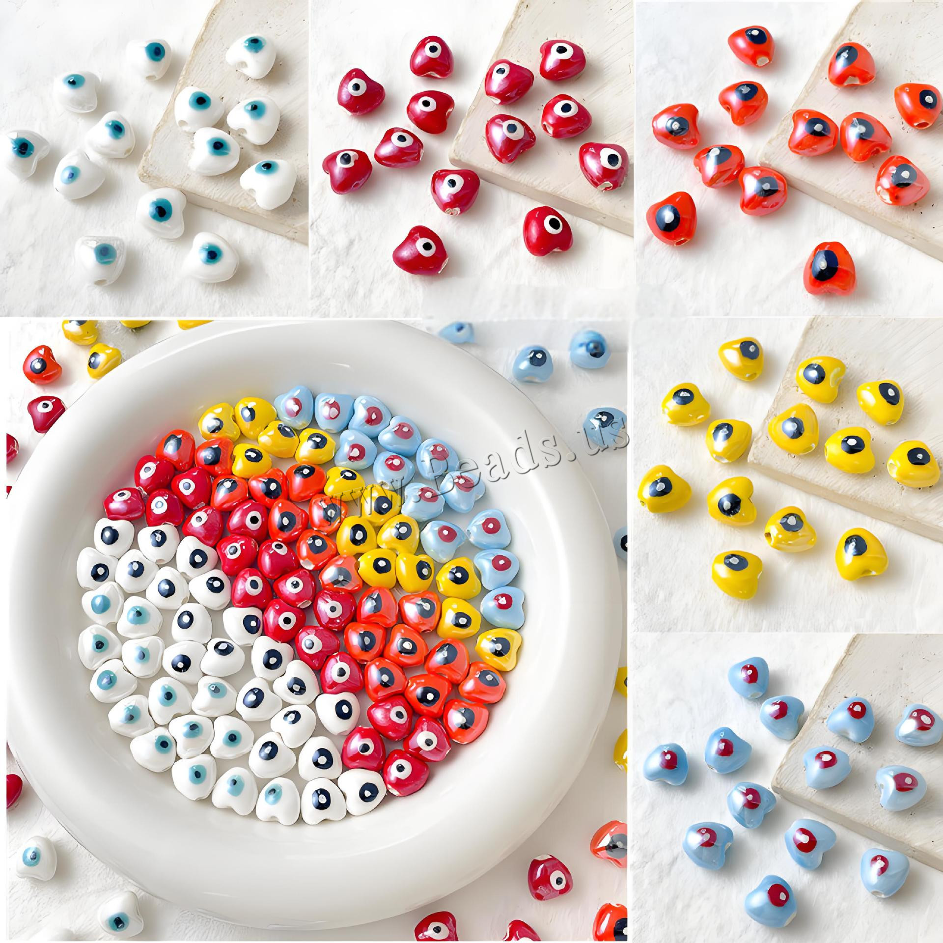 Perles de bijoux mode Evil Eye, porcelaine, coeur, DIY & normes différentes pour le choix, plus de couleurs à choisir, 100PC/sac, Vendu par sac