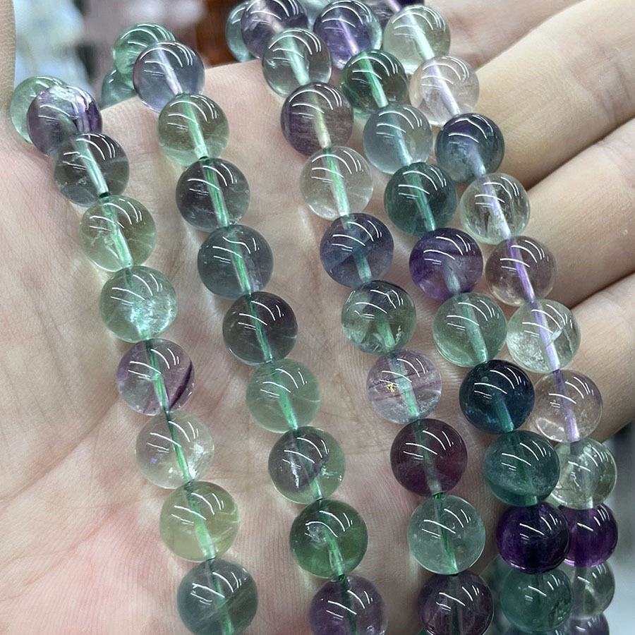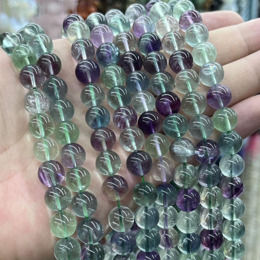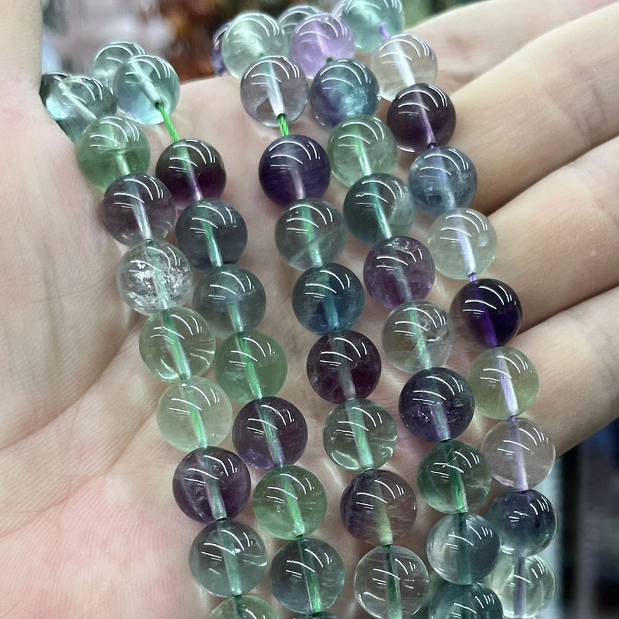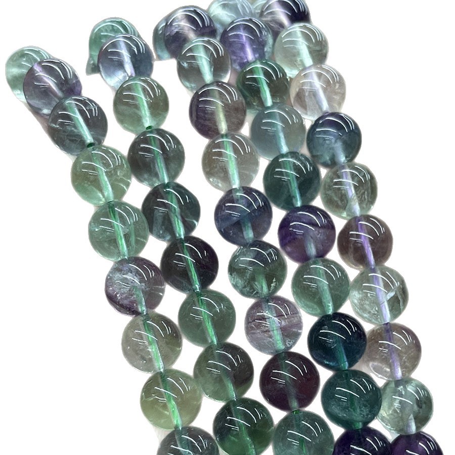 Perles de fluorite, Fluorite colorée, Rond, DIY, couleurs mélangées, Vendu par Environ 38 cm brin