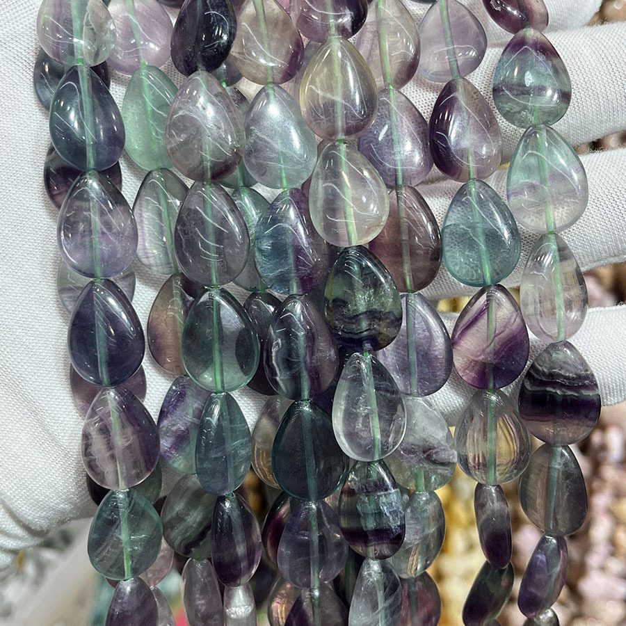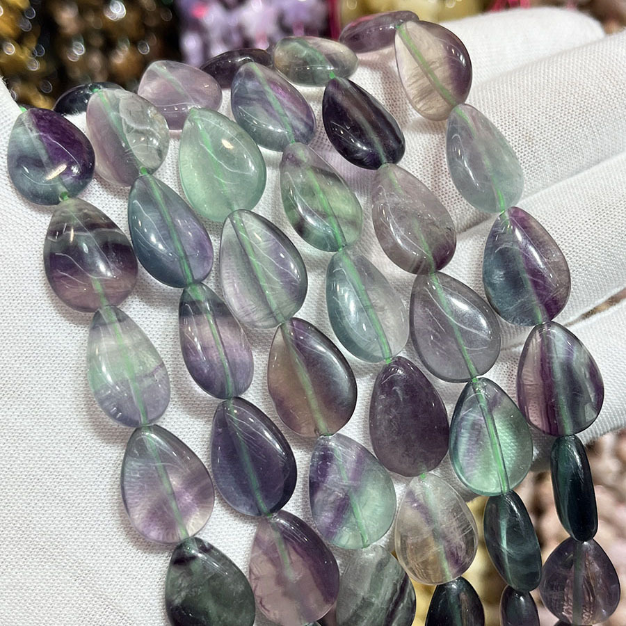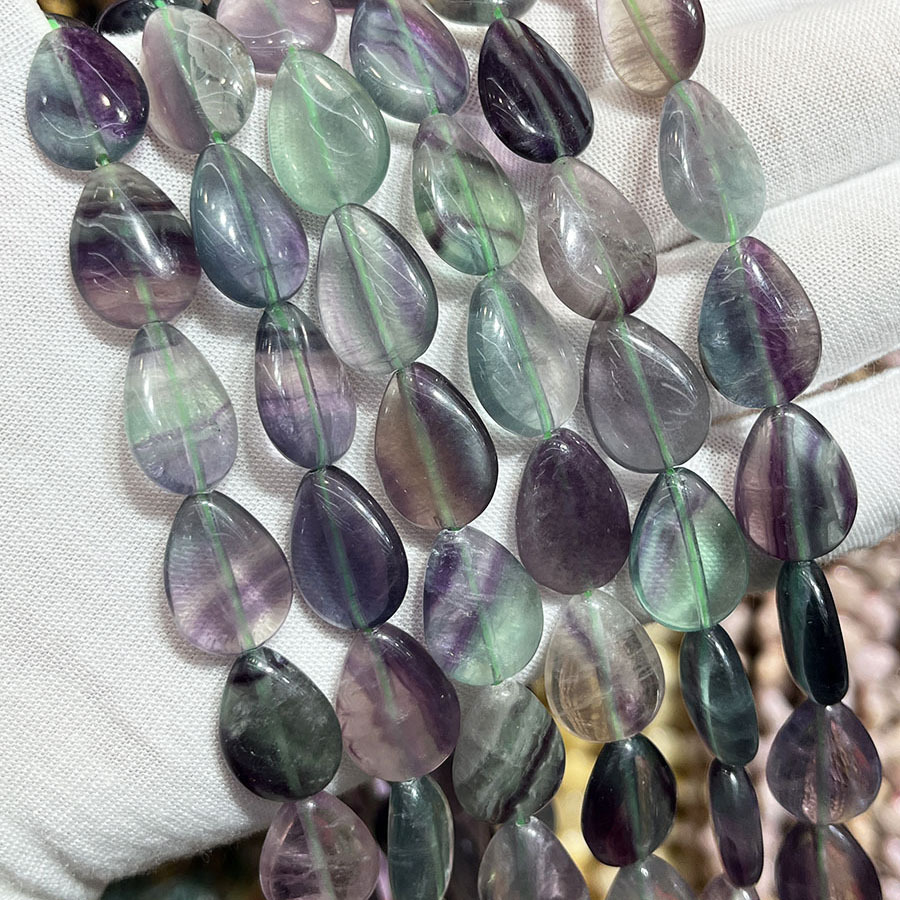 Perles de fluorite, Fluorite colorée, larme, DIY, couleurs mélangées, 13-18mm, Vendu par 38 cm brin
