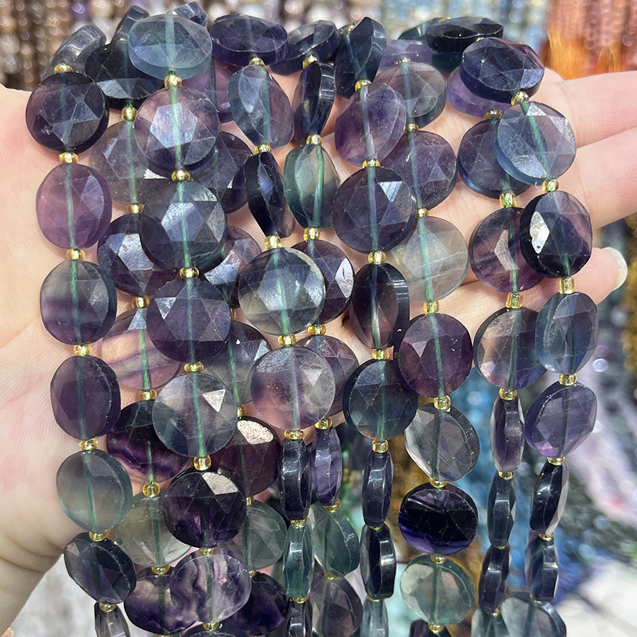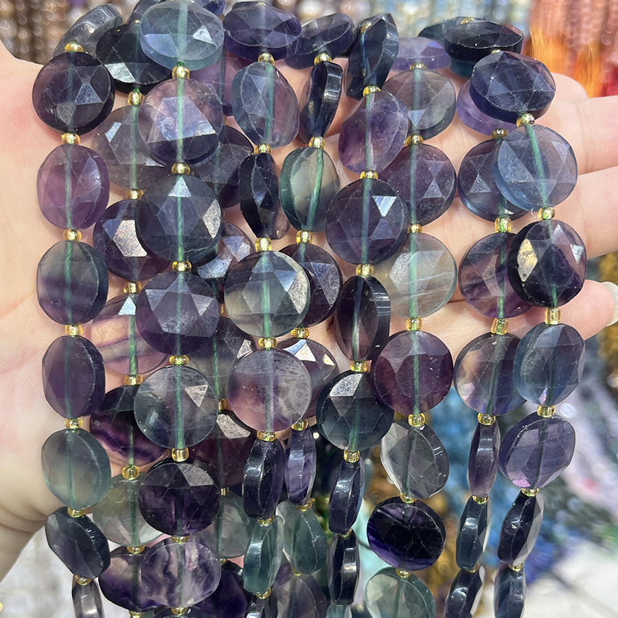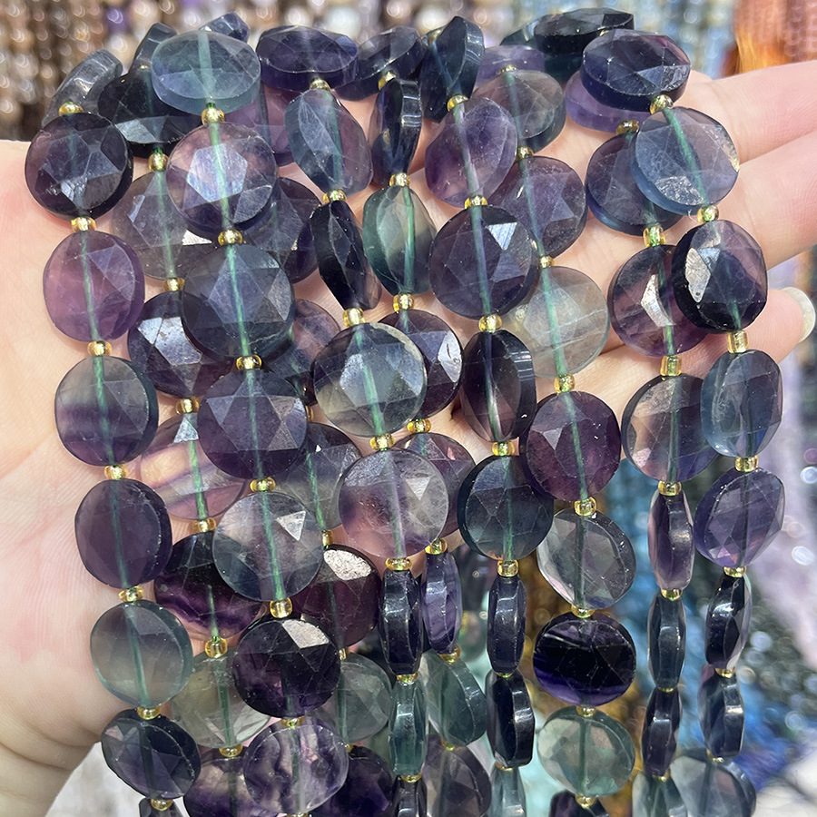Perles de fluorite, Fluorite colorée, avec Seedbead, Plat rond, DIY, couleurs mélangées, 15mm, Vendu par 38 cm brin