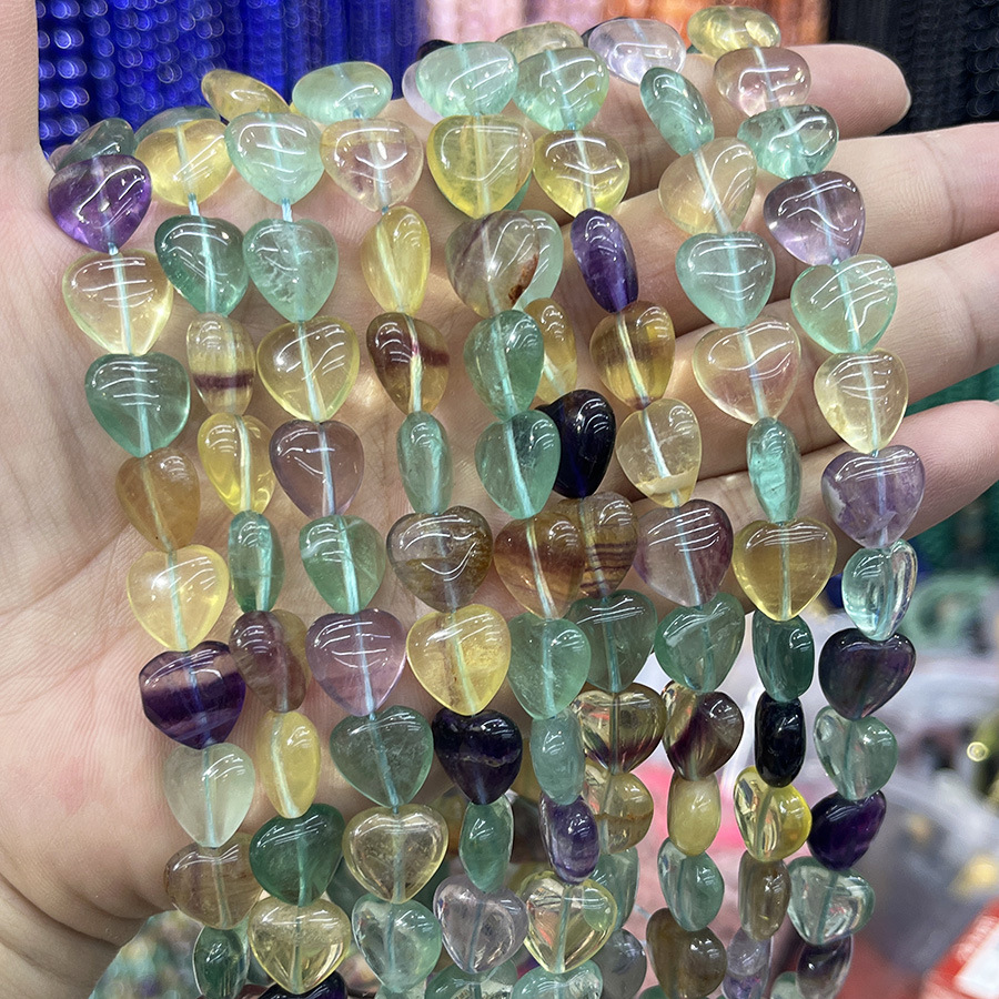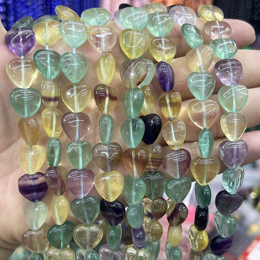 Perles de fluorite, Fluorite colorée, coeur, DIY, couleurs mélangées, Vendu par 38 cm brin