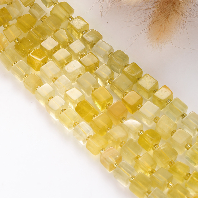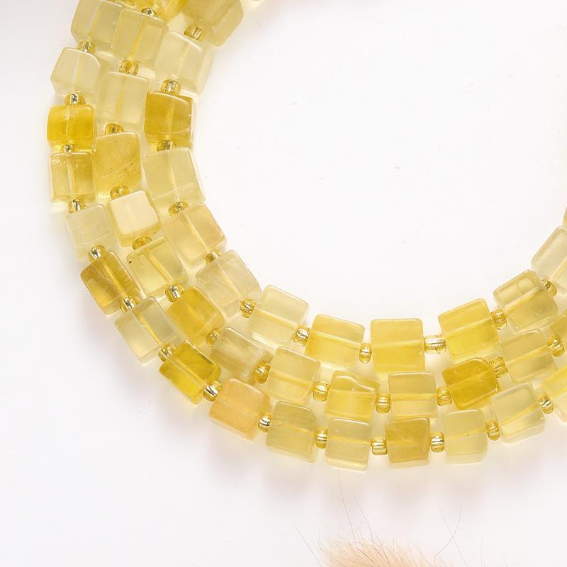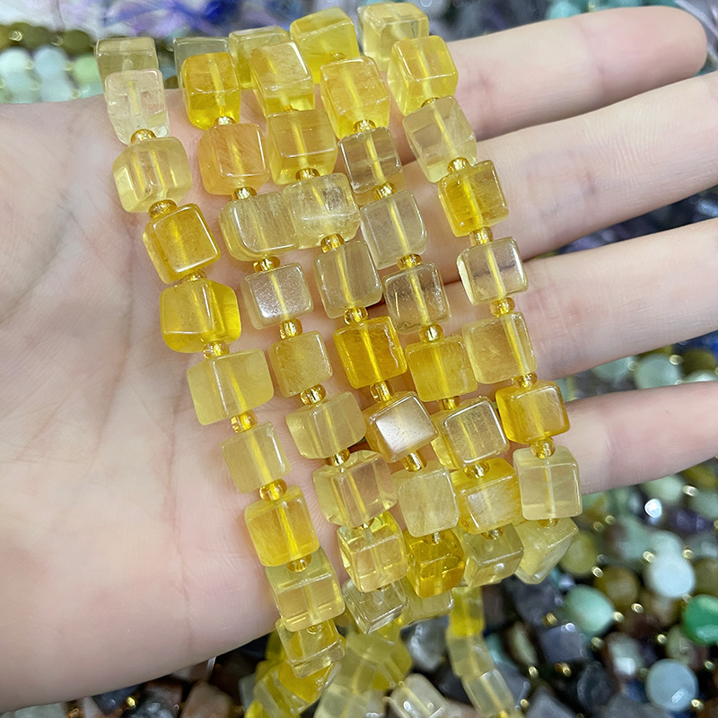 Perles de fluorite, Fluorine, avec Seedbead, cadre, DIY, Jaune, 8x8mm, Vendu par 38 cm brin