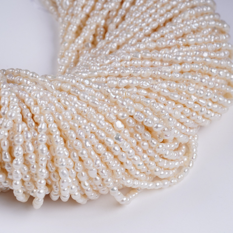 Perles d'eau douce de culture de riz, perle d'eau douce cultivée, DIY, blanc, 3-3.5mm, Vendu par 37 cm brin