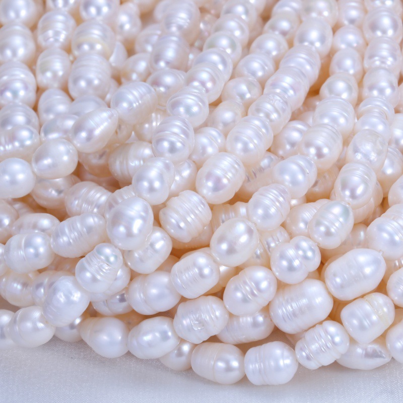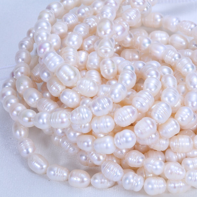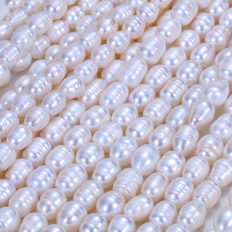 Perles d'eau douce de culture de riz, perle d'eau douce cultivée, DIY, blanc, 8-9mm, Longueur 36 cm, Vendu par PC