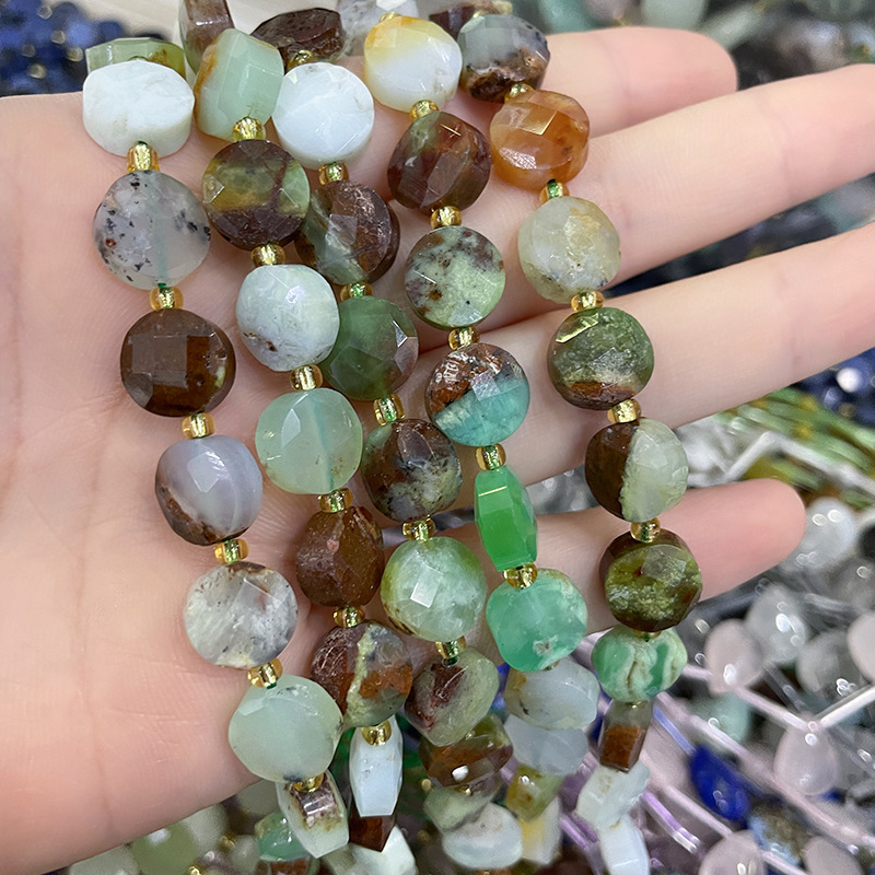Perles en jade, Australie Jade, avec Seedbead, Plat rond, DIY, couleurs mélangées, 10x10x4mm, Vendu par 38 cm brin