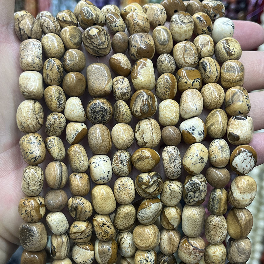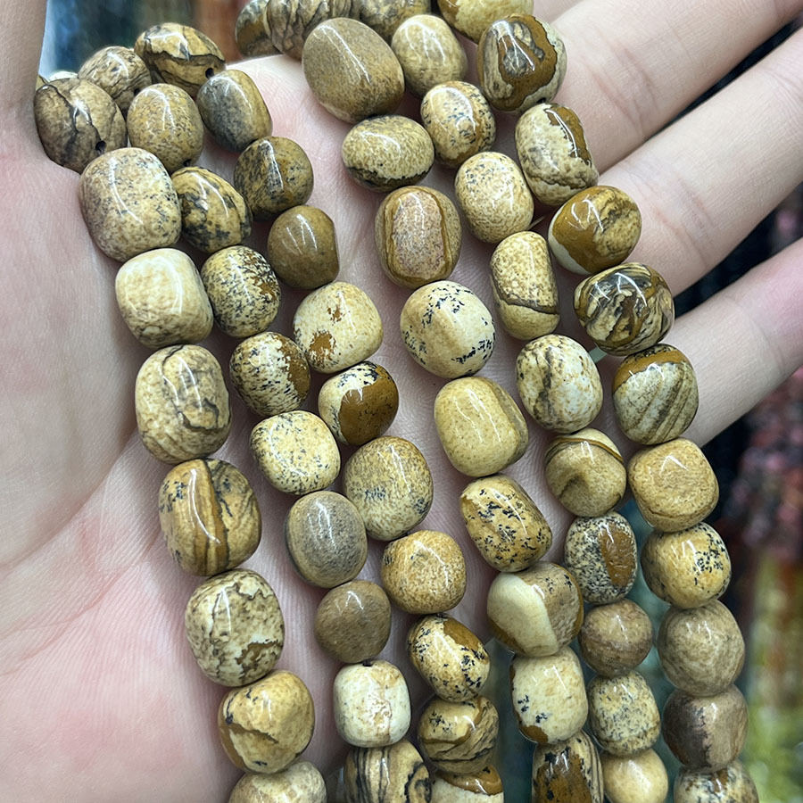 Perles en jaspe image, jaspe de photo, DIY, couleurs mélangées, Vendu par 38 cm brin