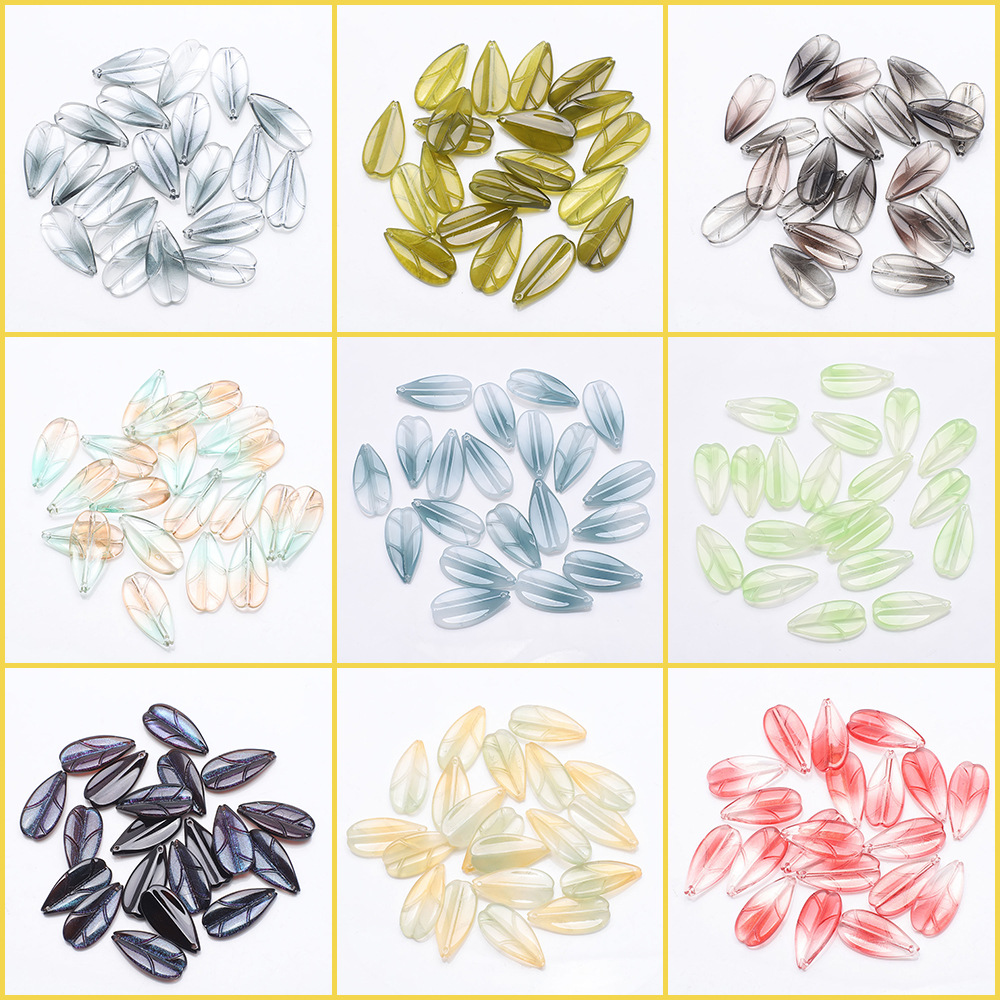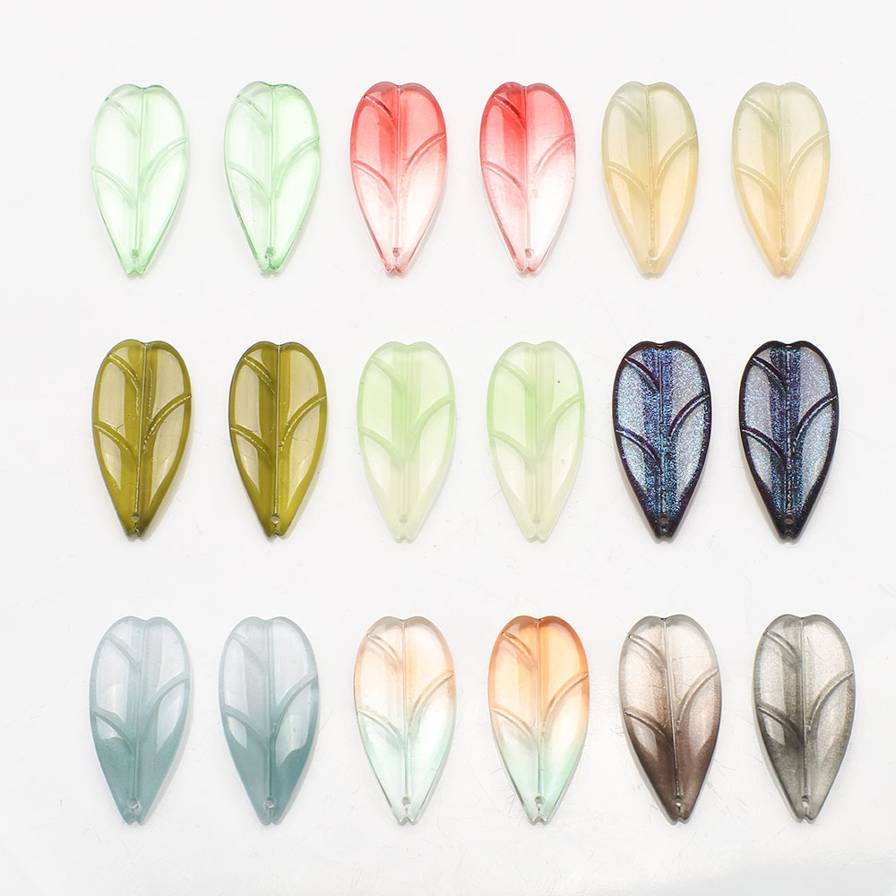 Perles en verre de mode, feuille, DIY, plus de couleurs à choisir, 13x26mm, 20PC/sac, Vendu par sac