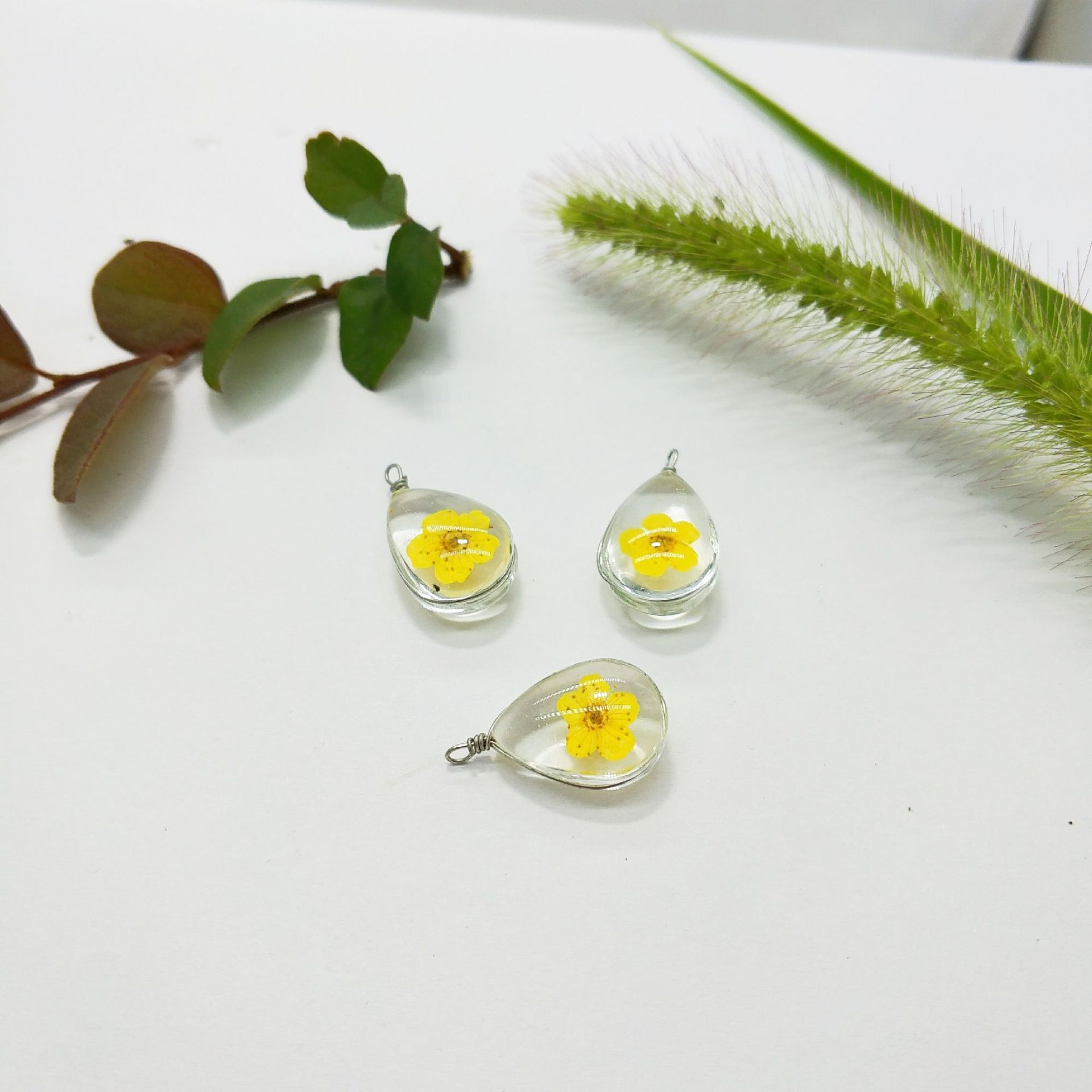 Perles en verre de mode, avec Fleurs séchées, larme, goutté d'époxy, DIY & styles différents pour le choix, plus de couleurs à choisir, 13x18mm, Vendu par PC