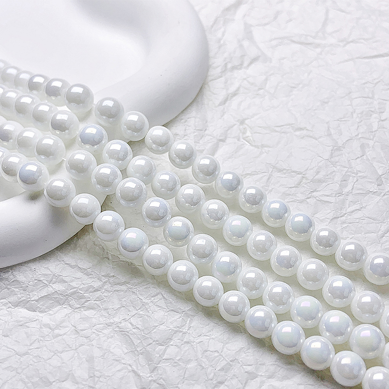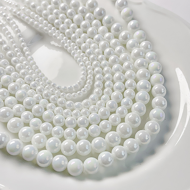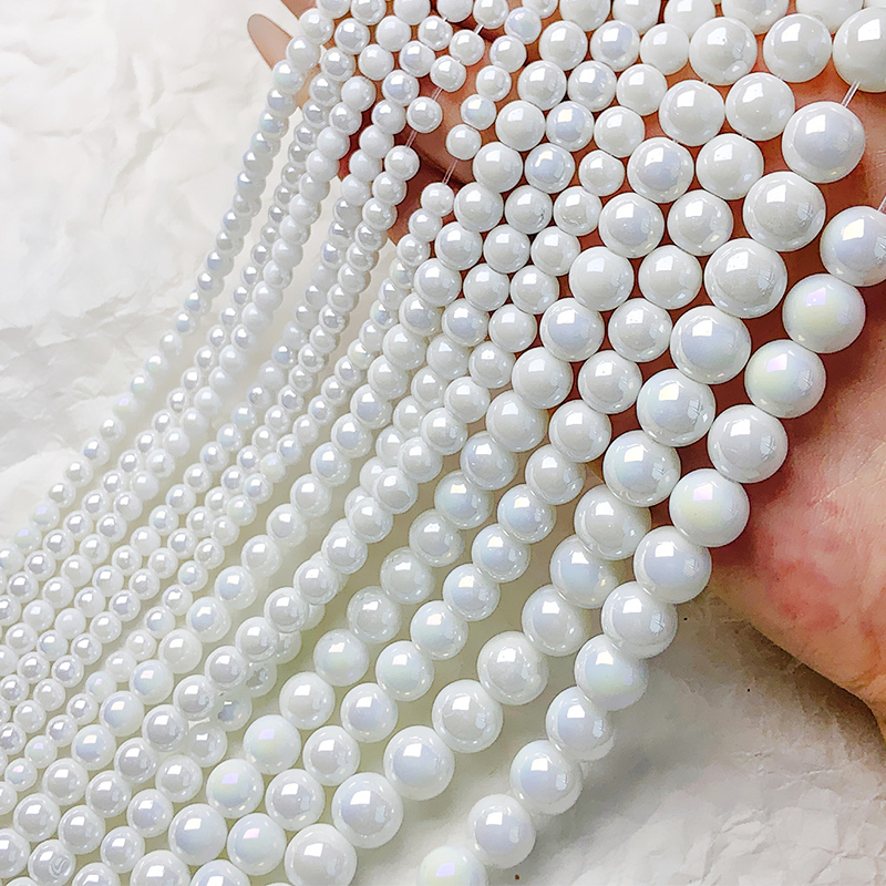 Perles en verre de mode, perle de verre, Rond, Placage de couleur AB, DIY & normes différentes pour le choix, blanc, Vendu par sac