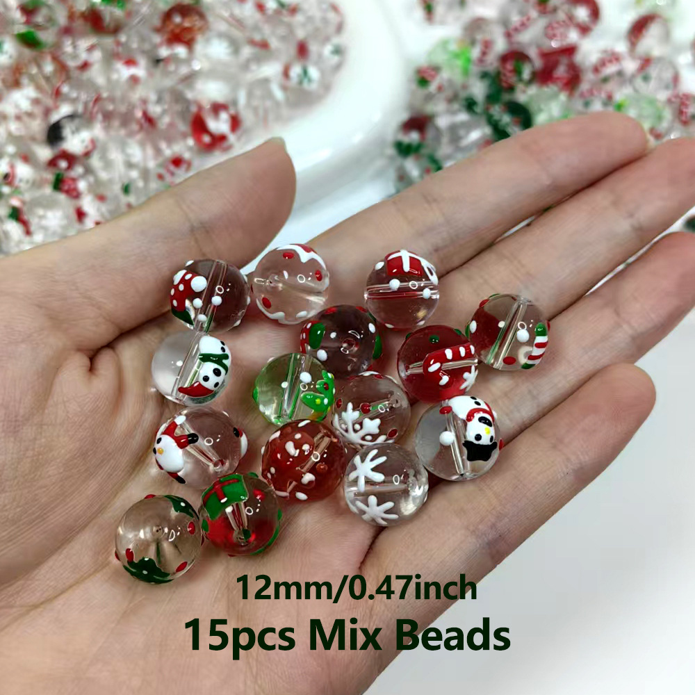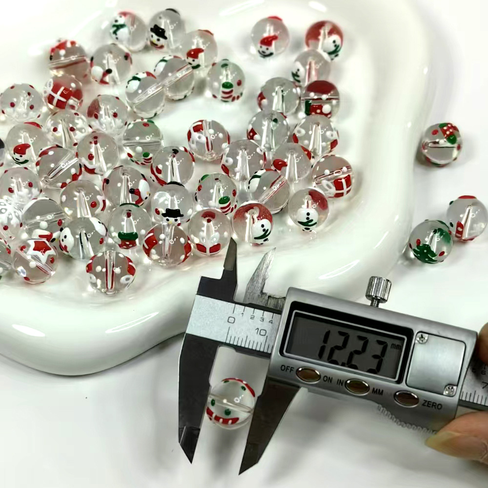 1:Black hat snowman beads2:Crutch ball3:Red hat beads4:White gift box ball beads5:Dark green christmas tree beads6:Green gift box round beads7:Red striped socks beads8:Light green christmas tree beads9:White dot socks ball beads10:Sugar ball beads11:Bearded santa claus ball12:White socks with pointed socks and round beads13:Snowflake dotted beads14:Five-pointed star beads15:Pure white snowflake beads16:Randomly mixed colors