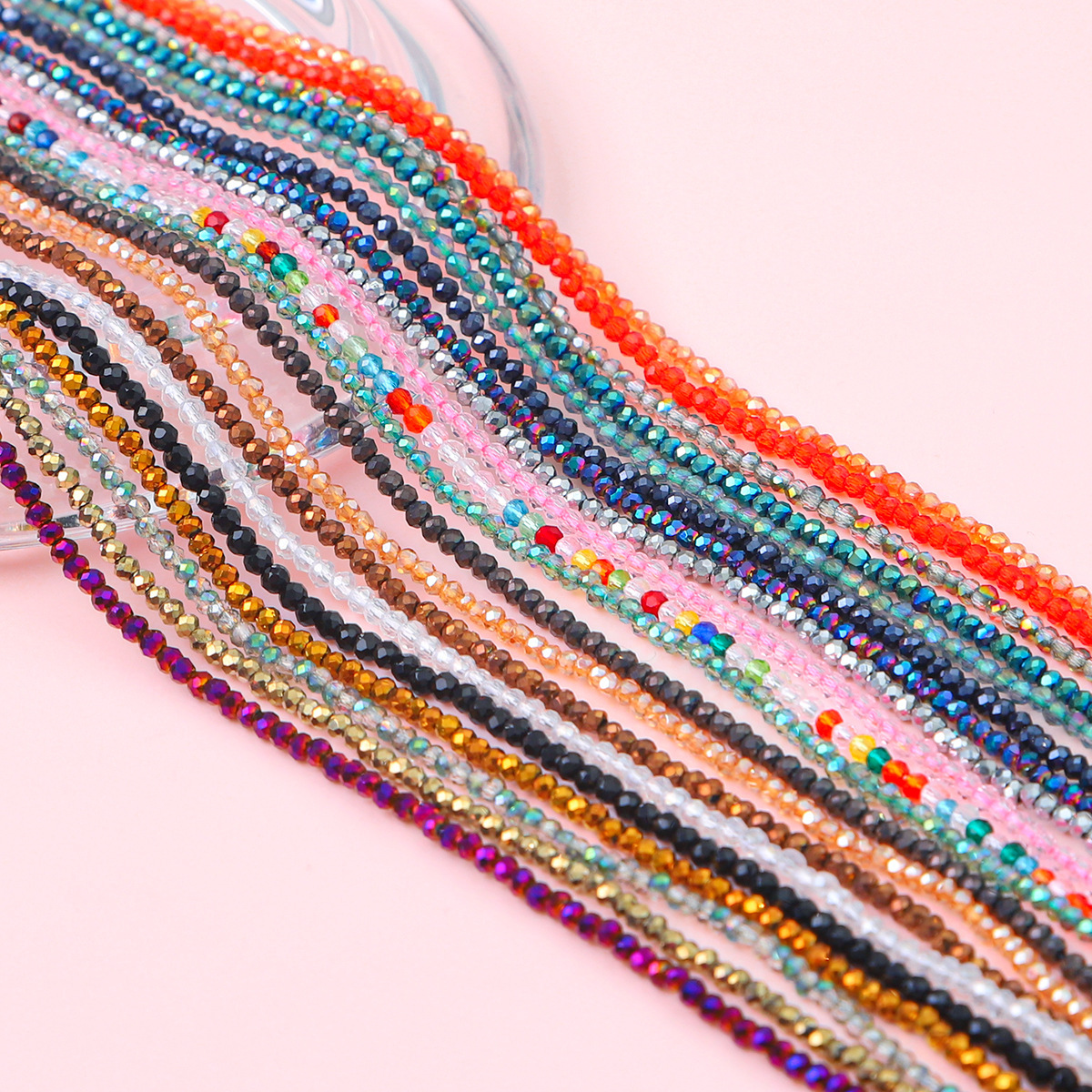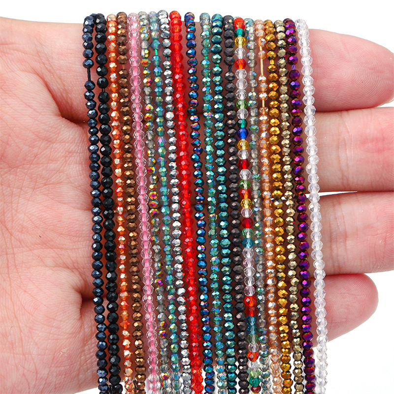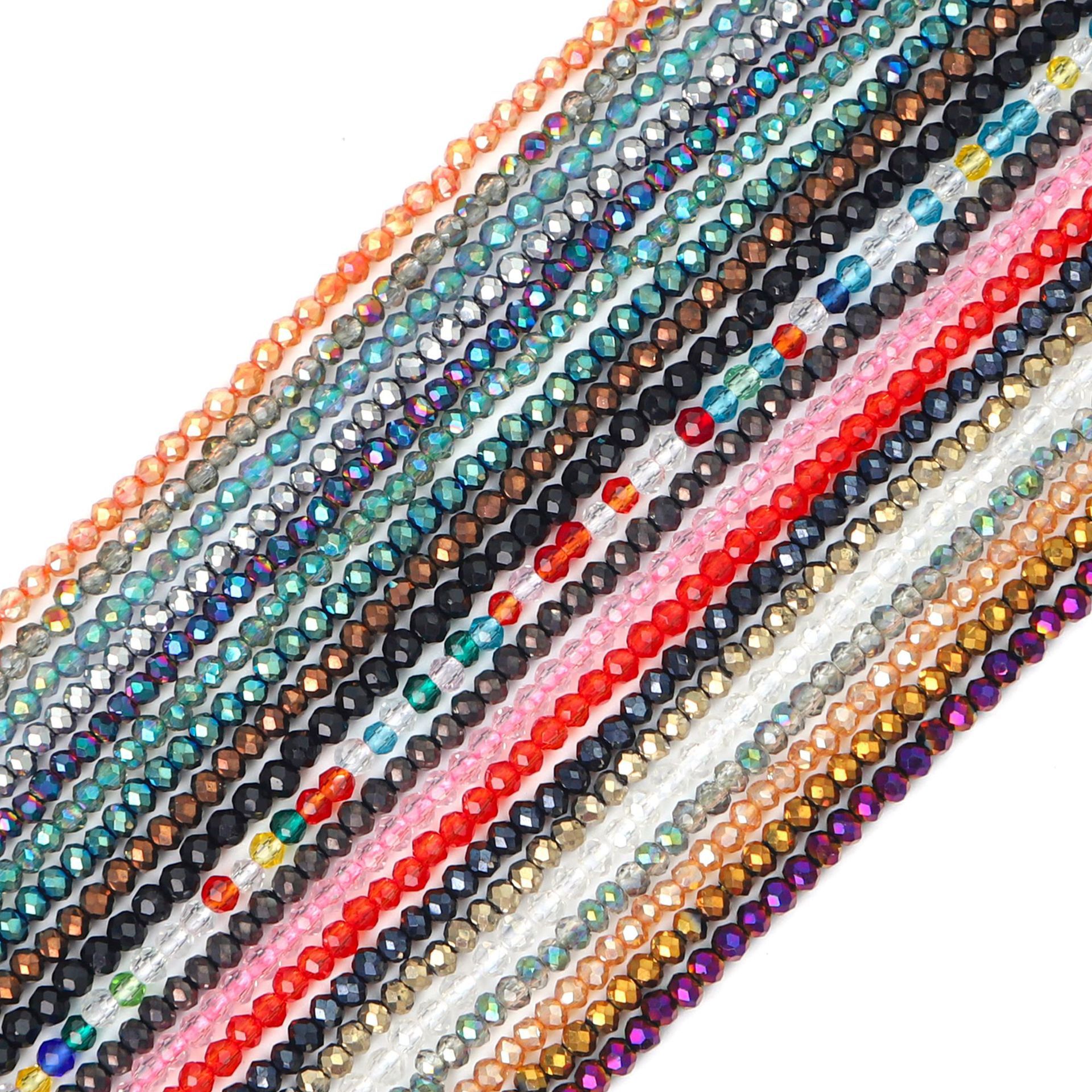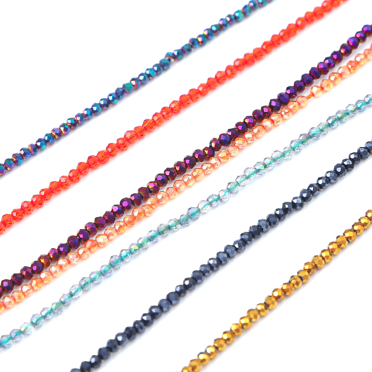 Perles en verre de mode, Placage de couleur d'or, DIY, plus de couleurs à choisir, 2mm, Trou:Environ 0.8mm, Longueur 36 cm, 185PC/boîte, Vendu par boîte