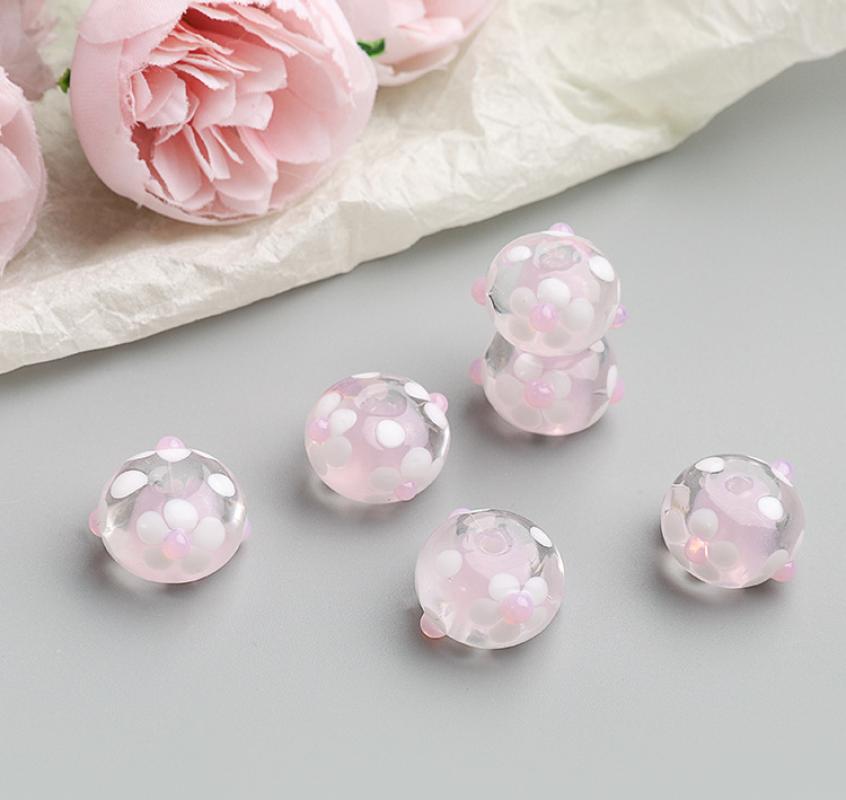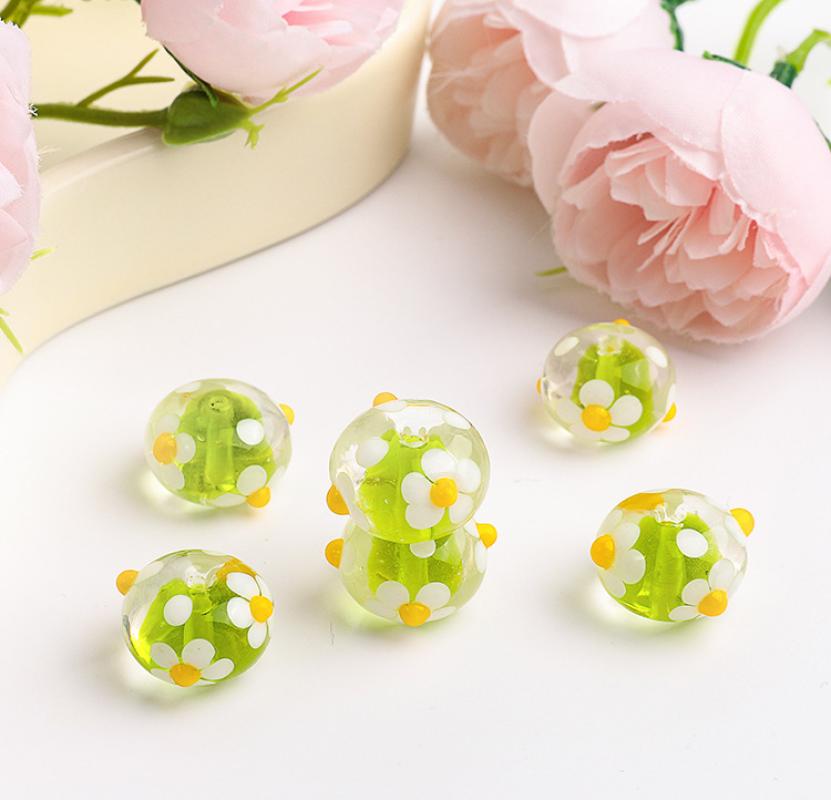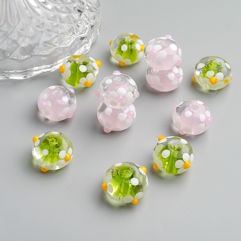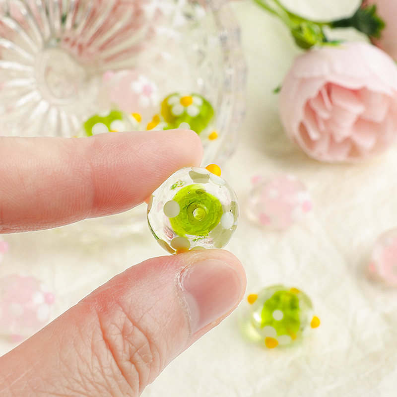 Perles en verre de mode, Rond, DIY & avec le motif de fleurs, plus de couleurs à choisir, 17x9mm, Trou:Environ 2mm, Vendu par PC