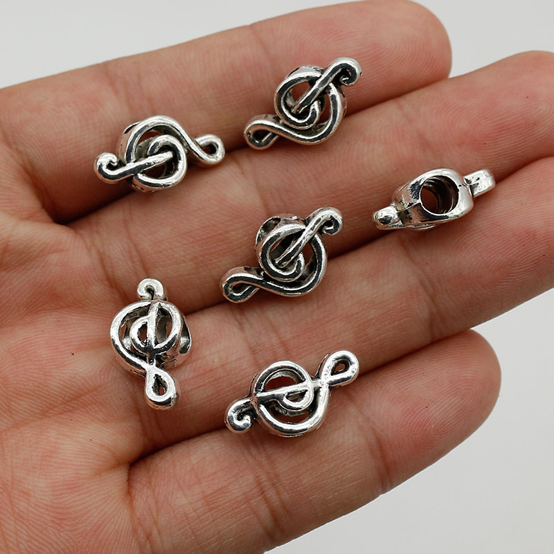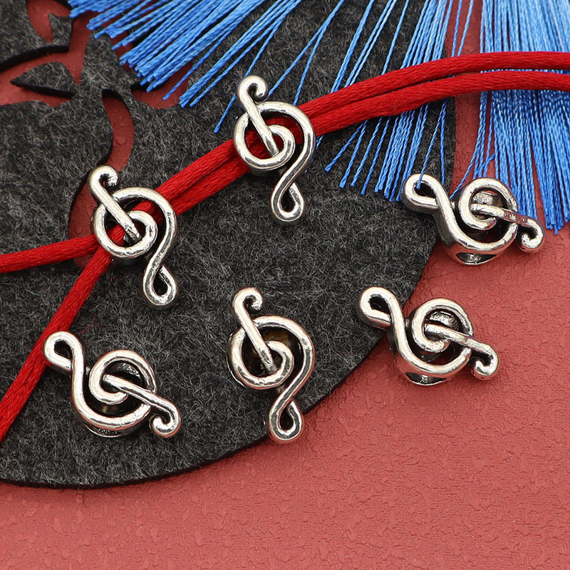 Perles intercalaires en alliage de zinc, note de musique, Placage de couleur argentée, DIY, 100PC/sac, Vendu par sac