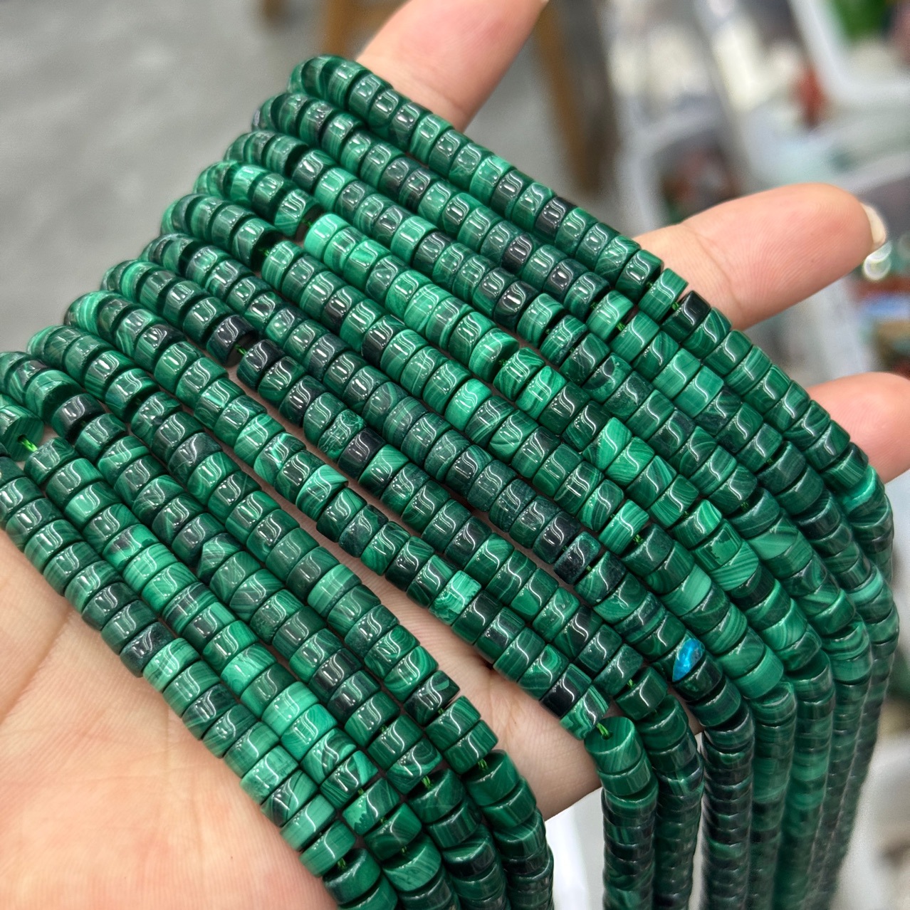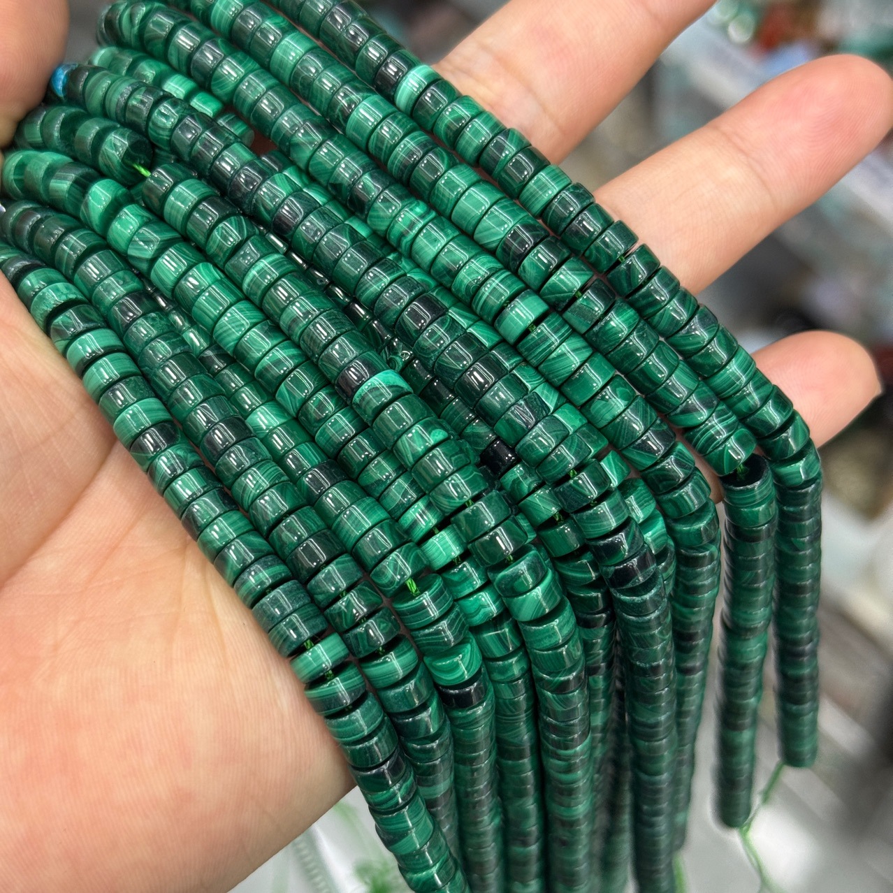 Perles malachites, Malachite, DIY, 6x3mm, Vendu par Environ 38 cm brin