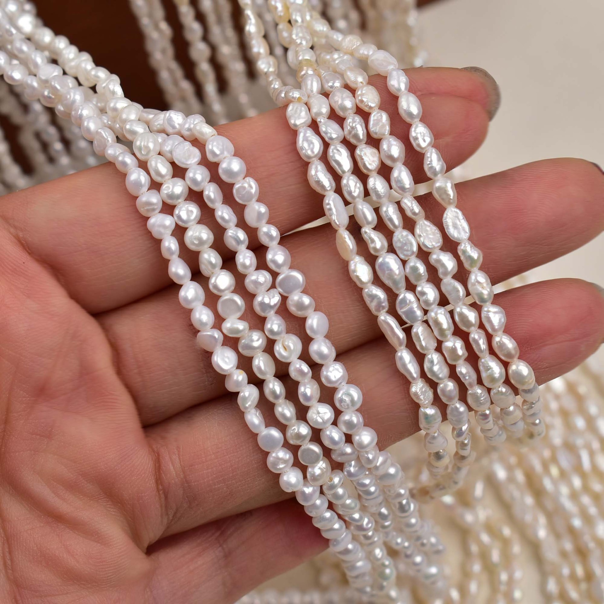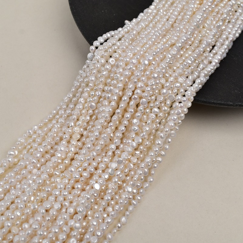 Perles nacres baroques de culture d'eau douce , perle d'eau douce cultivée, DIY, blanc, 3-4mm, Vendu par 34 cm brin