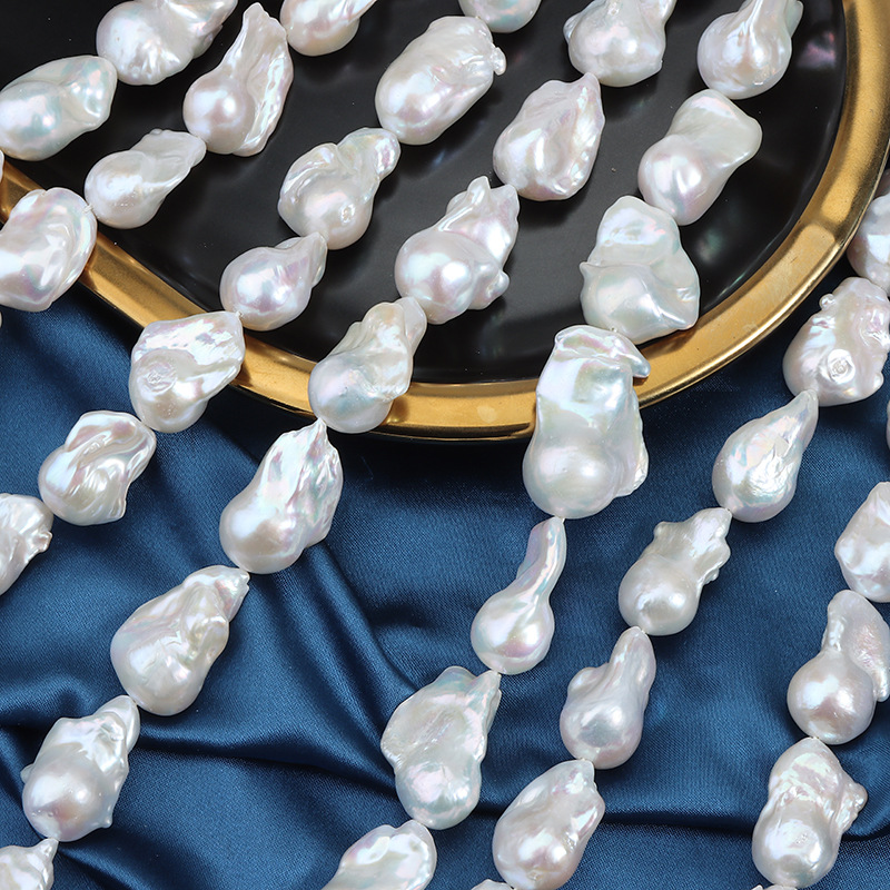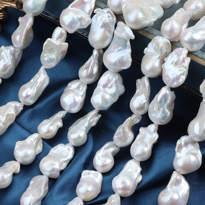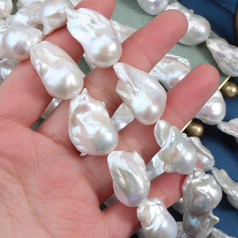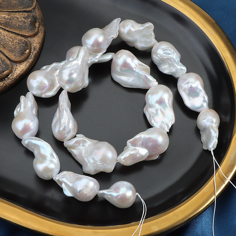 Perles nacres baroques de culture d'eau douce , perle d'eau douce cultivée, DIY, blanc, 15x20mm, Vendu par 40 cm brin