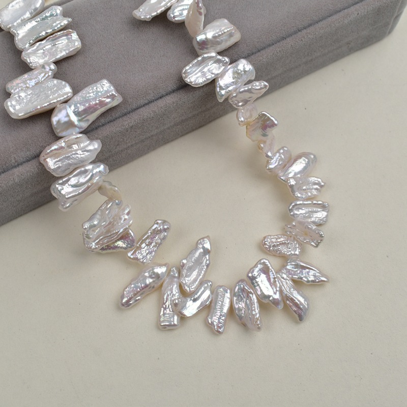 Perles nacres baroques de culture d'eau douce , perle d'eau douce cultivée, DIY, blanc, 9-18mm, Vendu par 39 cm brin