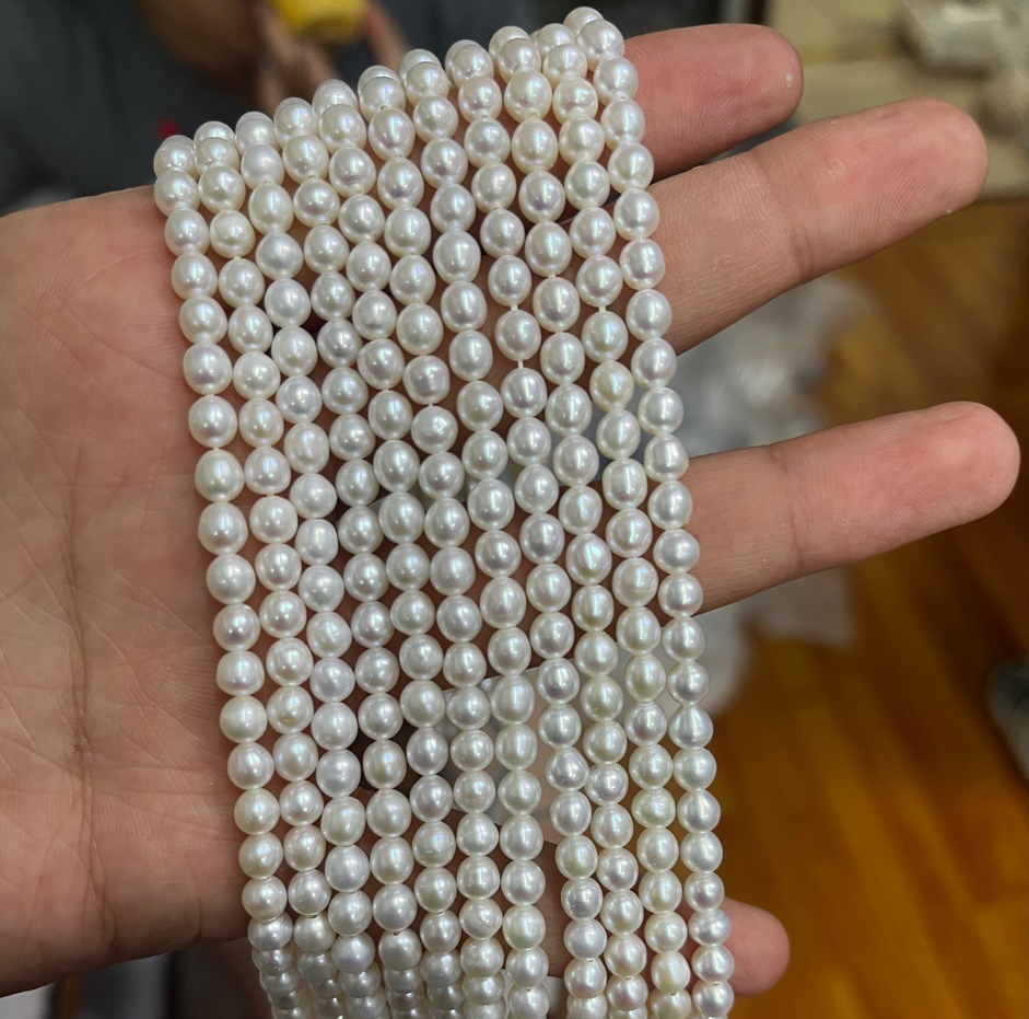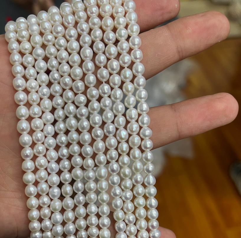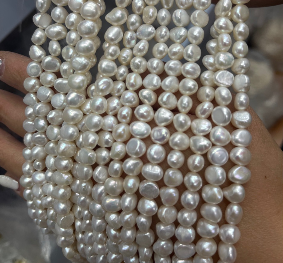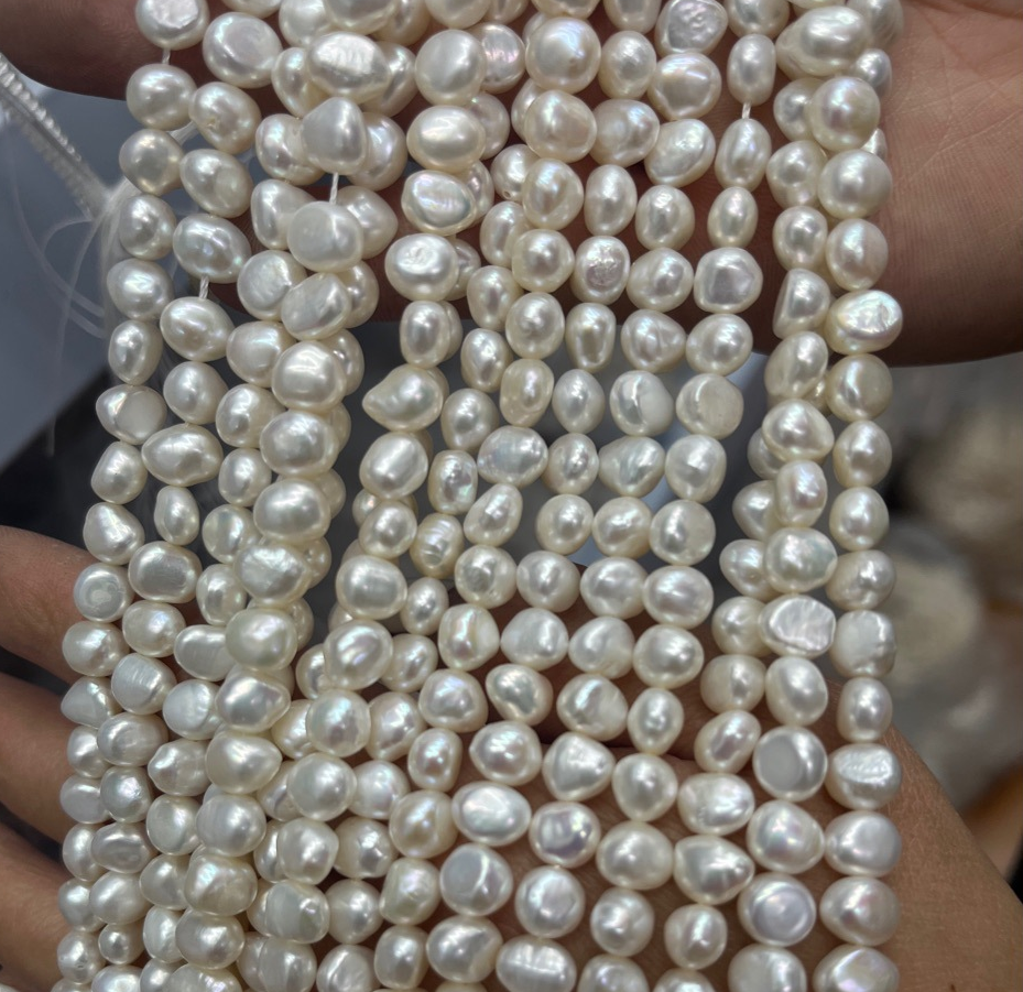 Perles nacres pommes de terre de culture d'eau douce, perle d'eau douce cultivée, pomme de terre, DIY, blanc, 5-6mm, Vendu par 36 cm brin