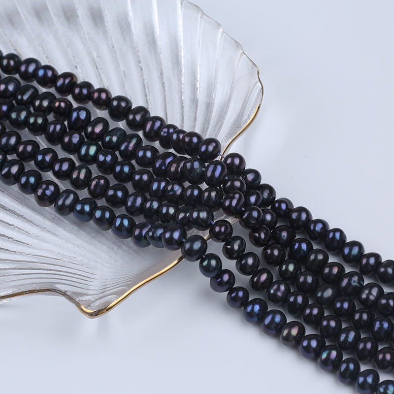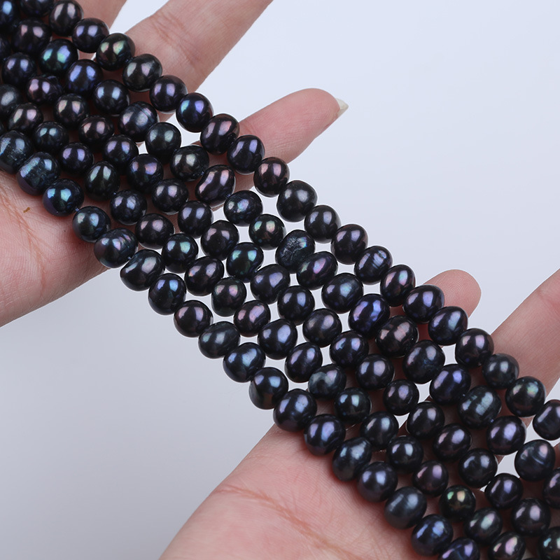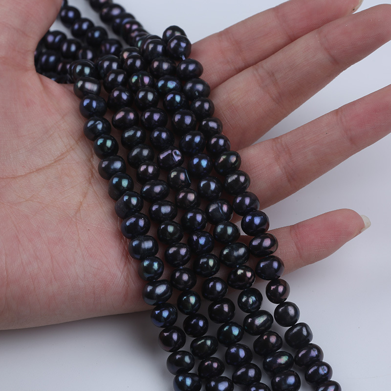 Perles nacres pommes de terre de culture d'eau douce, perle d'eau douce cultivée, pomme de terre, DIY, noire, 7-8mm, Vendu par 36 cm brin