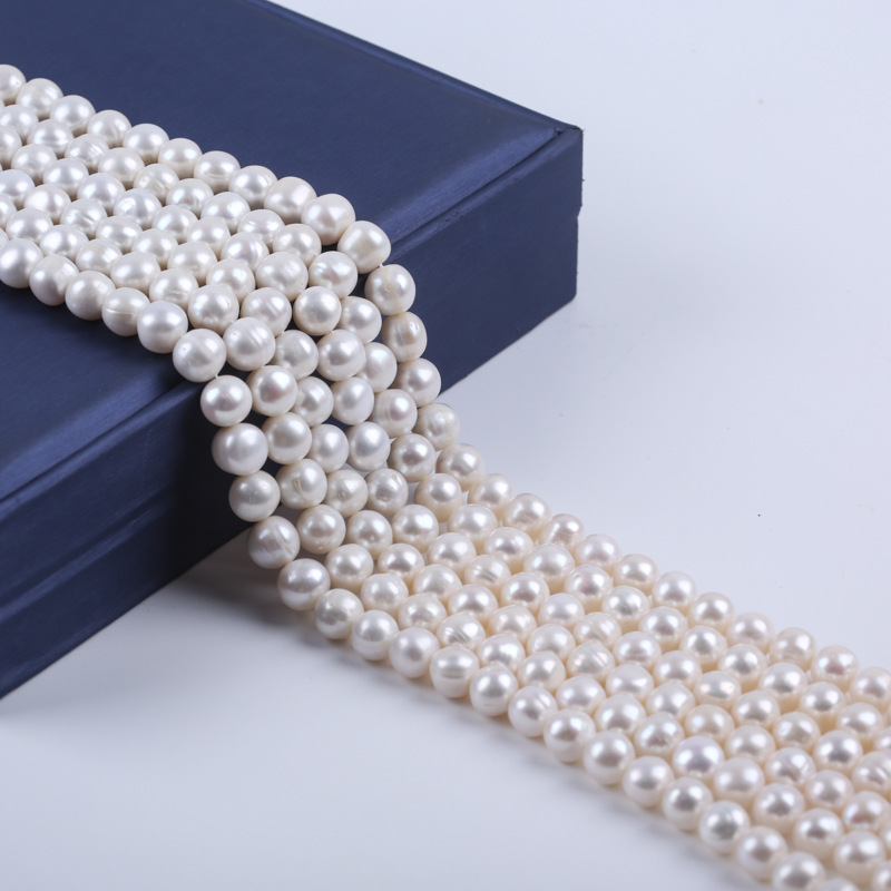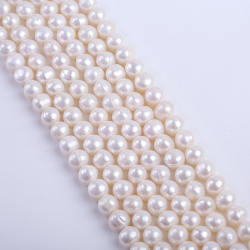 Perles nacres pommes de terre de culture d'eau douce, perle d'eau douce cultivée, Légèrement rond, DIY, blanc, 10-11mm, Vendu par 37 cm brin