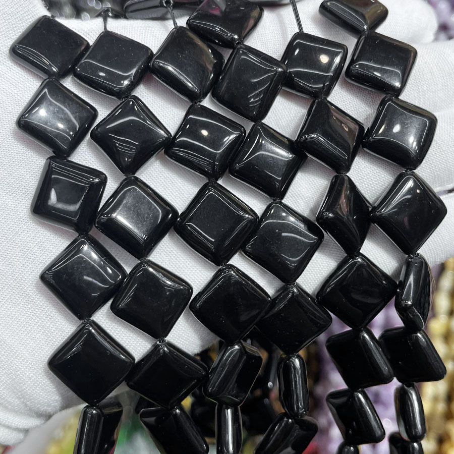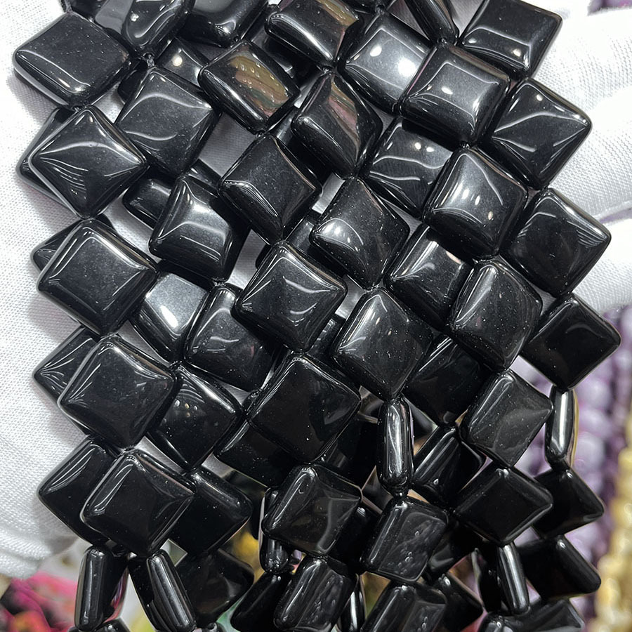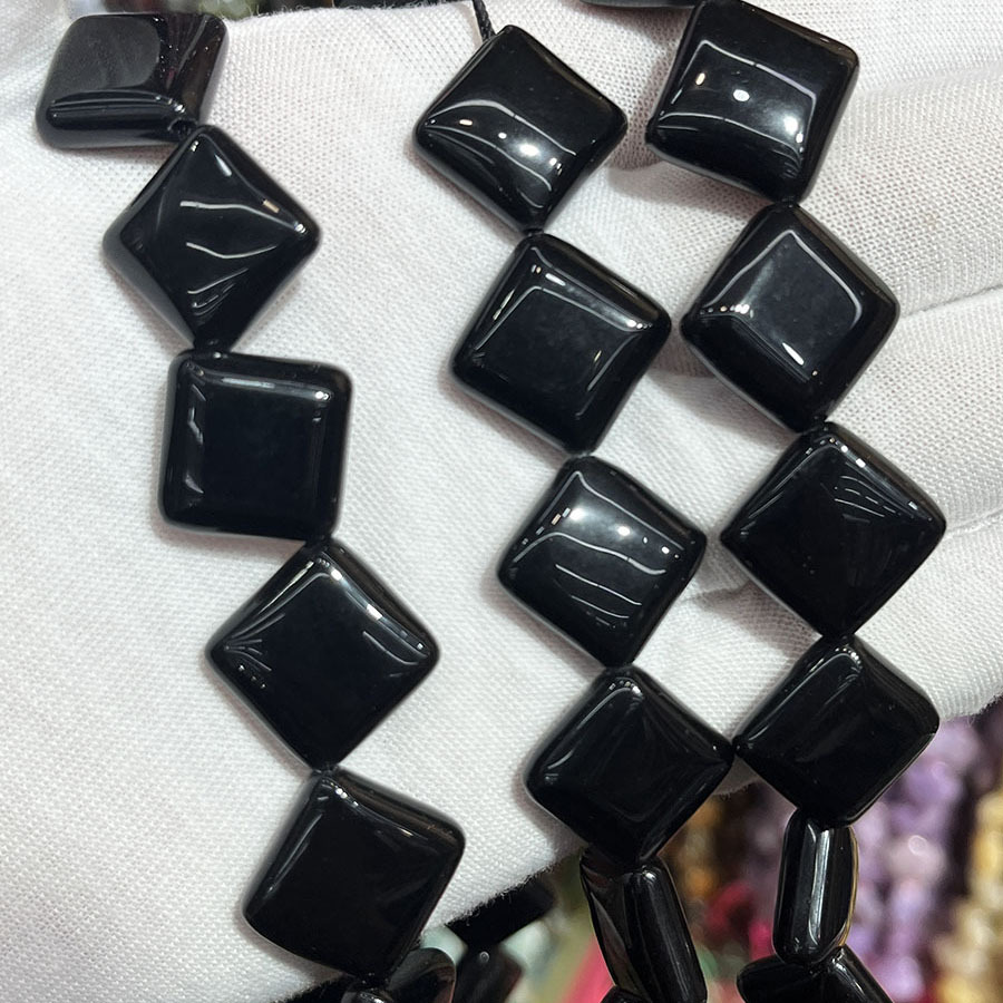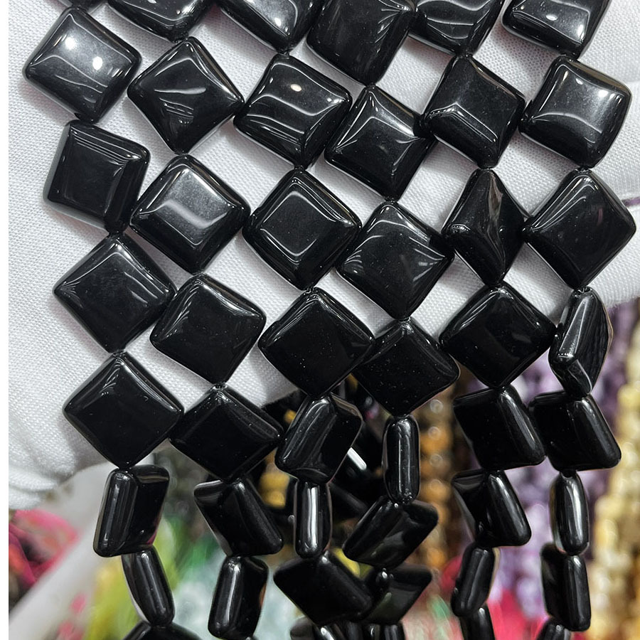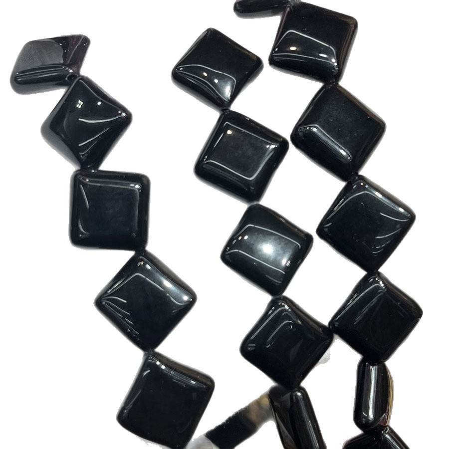 Perles obsidienne noire, Losange, DIY, noire, 15mm, Vendu par 38 cm brin