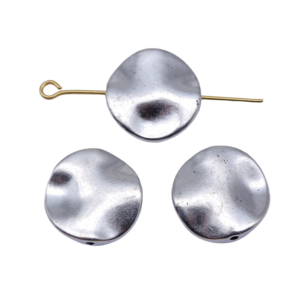 Perles plates en alliage de zinc , Rond, Placage, DIY, 15x15x3.40mm, 10PC/sac, Vendu par sac