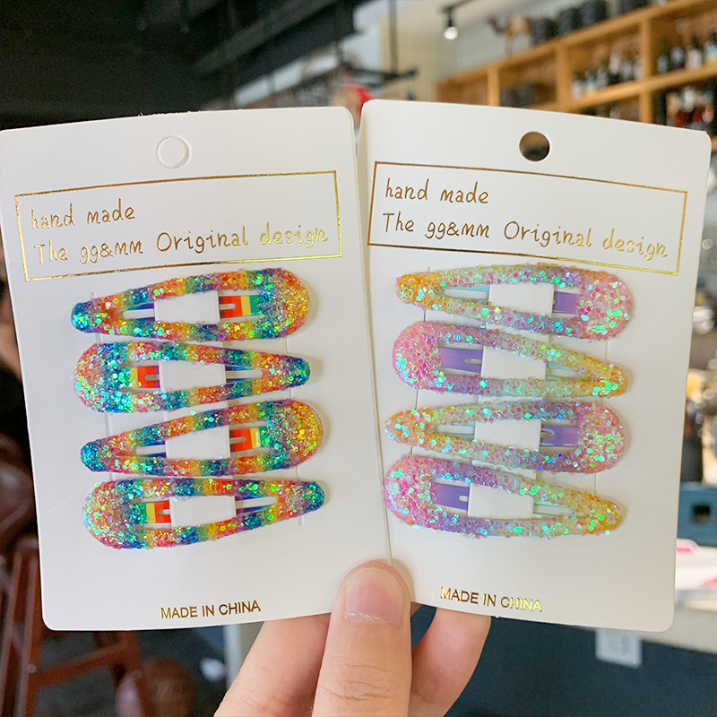 Pinces à cheveux Snap, métalballast, avec Paillettes, bijoux de mode, plus de couleurs à choisir, 4PC/fixé, Vendu par fixé
