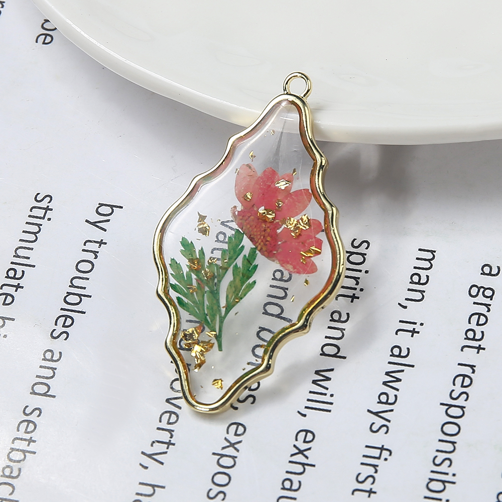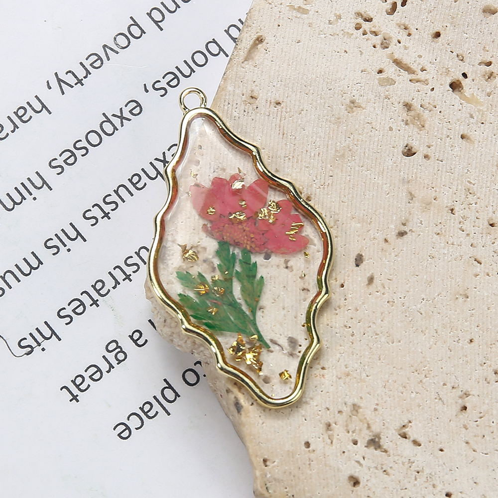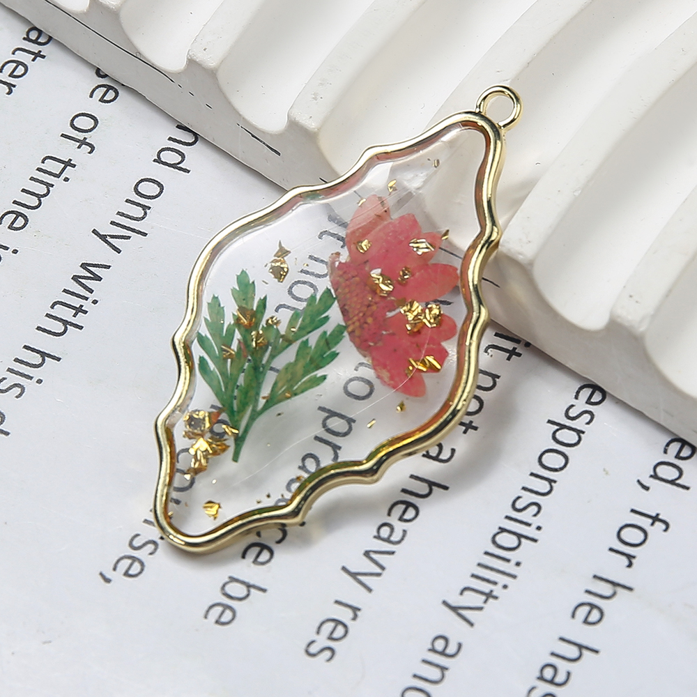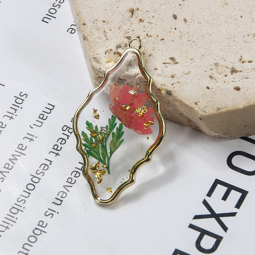 Résine Zinc Alloy pendentifs, alliage de zinc, avec Fleurs séchées & résine, Losange, Placage, DIY, couleurs mélangées, 27.02x3.02x48.34mm, Vendu par PC