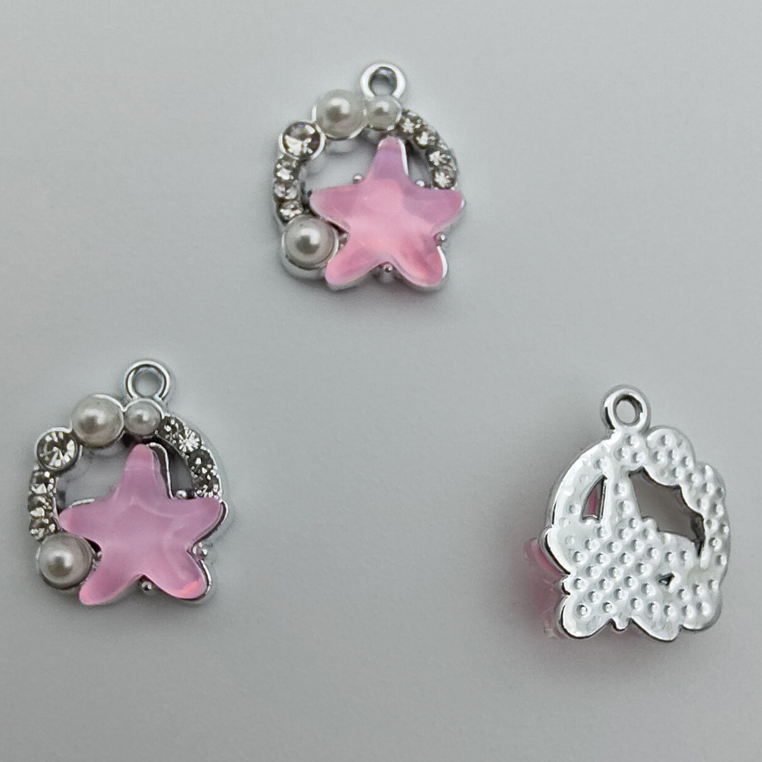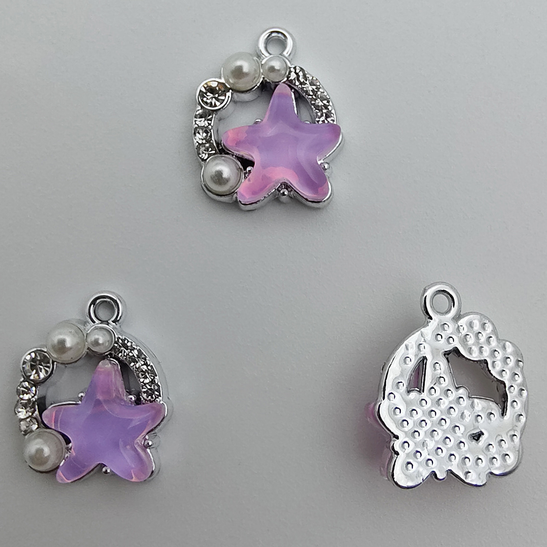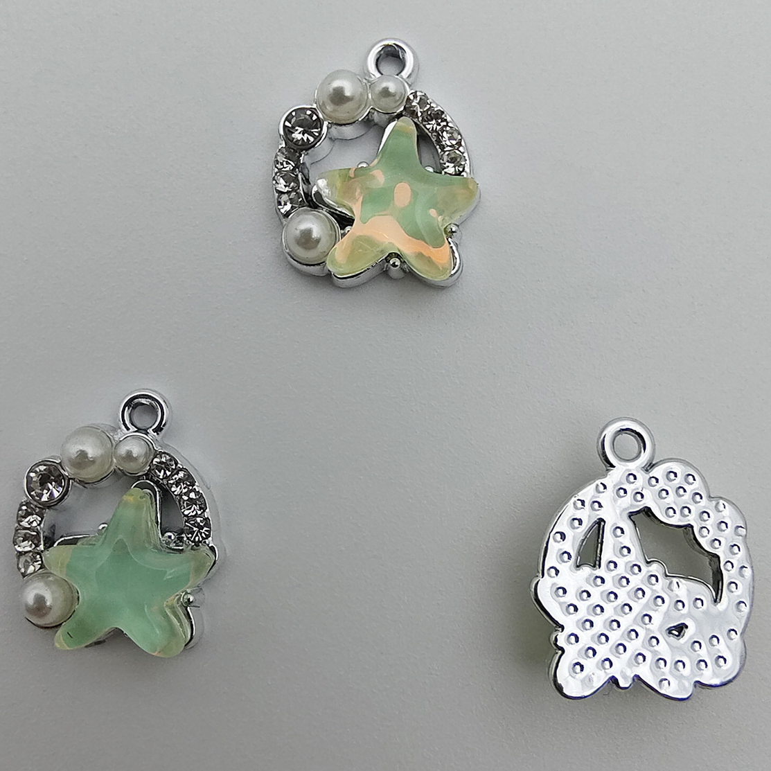Résine Zinc Alloy pendentifs, alliage de zinc, avec résine & perle de plastique, étoile, Placage de couleur platine, DIY & avec strass & creux, plus de couleurs à choisir, 16.40x13.20x5.30mm, 100PC/sac, Vendu par sac
