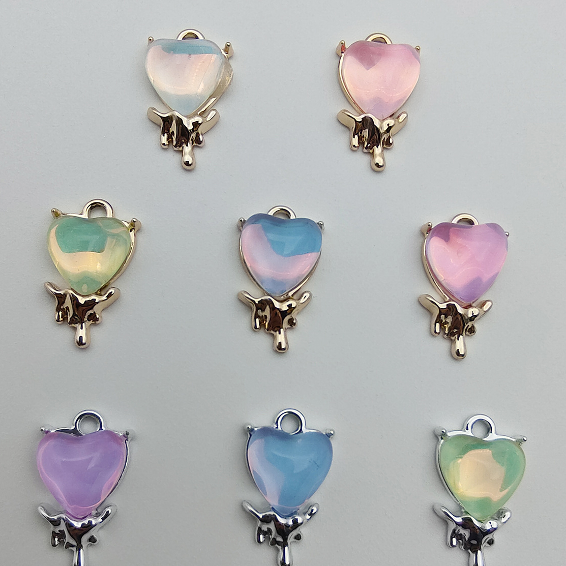 Résine Zinc Alloy pendentifs, alliage de zinc, avec résine, coeur, Placage, DIY, plus de couleurs à choisir, 18.80x10.80x6.20mm, 100PC/sac, Vendu par sac